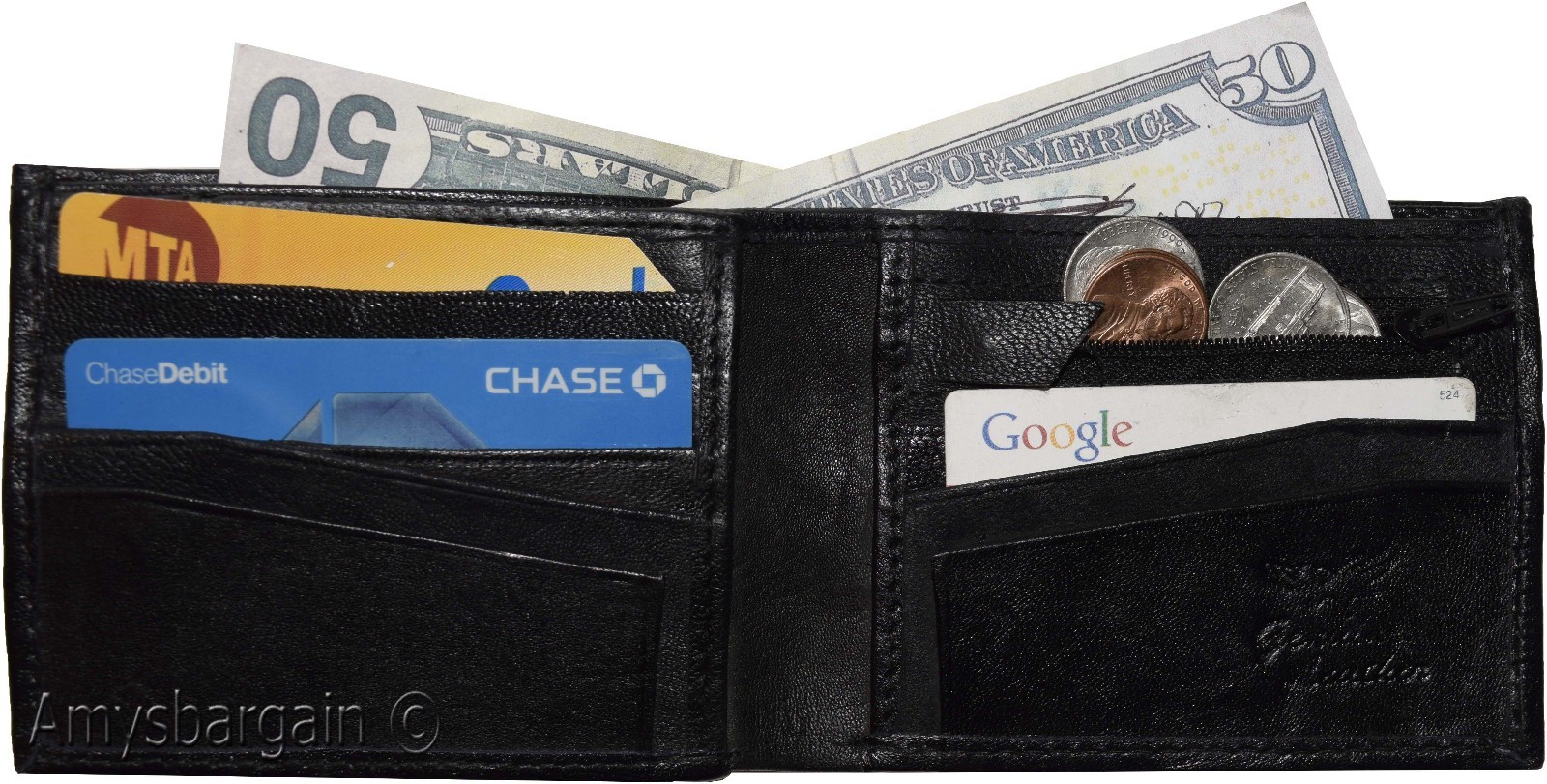 Description:This soft genuine leather Bi-fold men's wallet offers 8 credit card spaces. 2 billfold pockets. It also has a 3rd zip billfold for bills or coins. It would make a great gift item, or treat yourselves to it.Buy it now! it will not last at this price!Item Details: