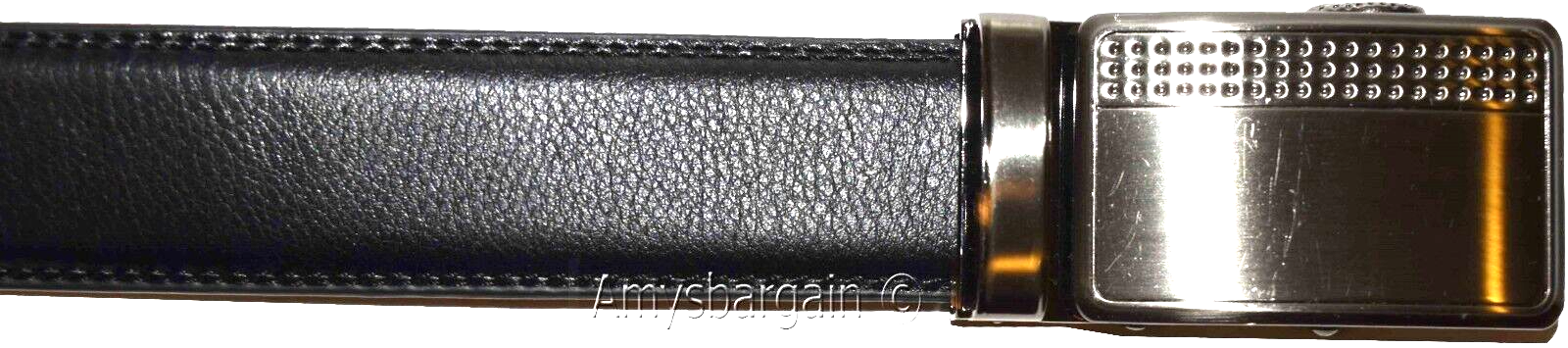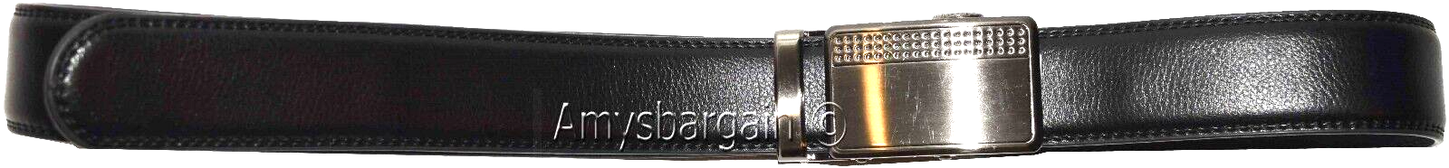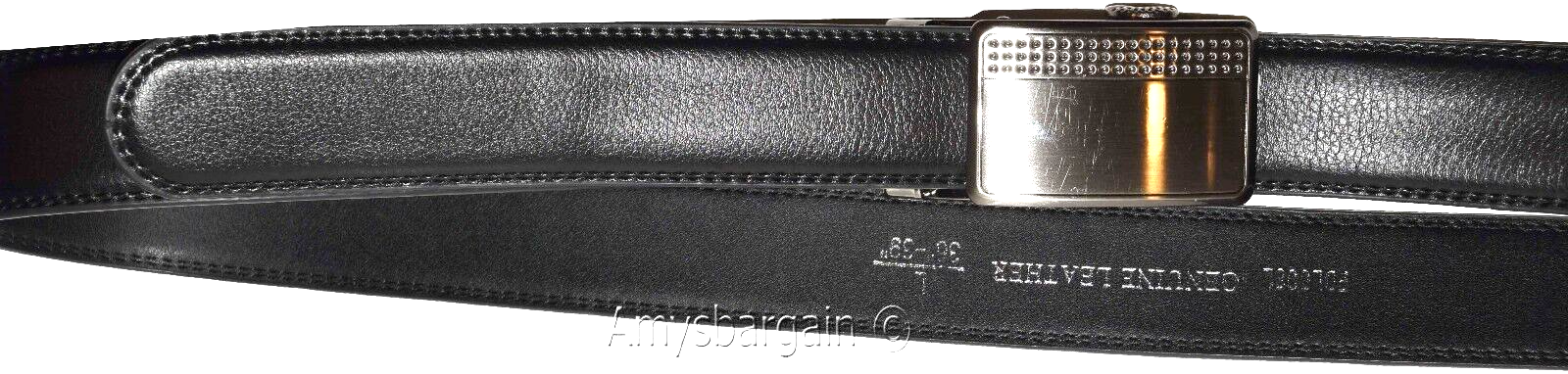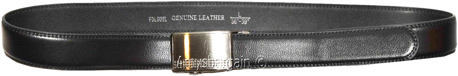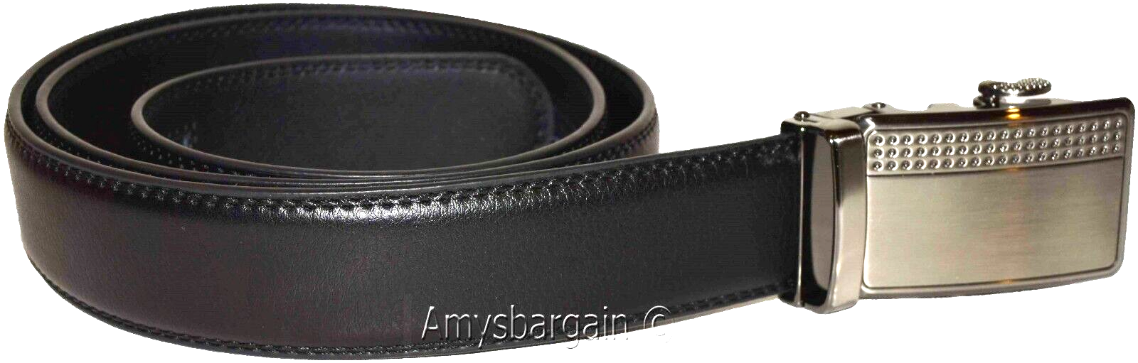 Men's Black Leather Dress Belt (XL) Auto-Lock belt Men's white Quick lock belt.Description: