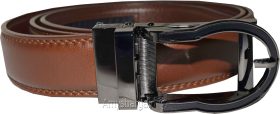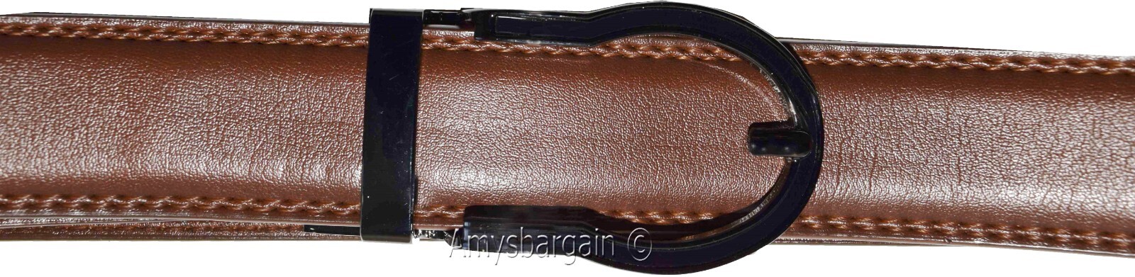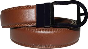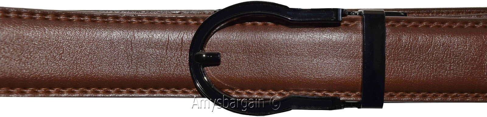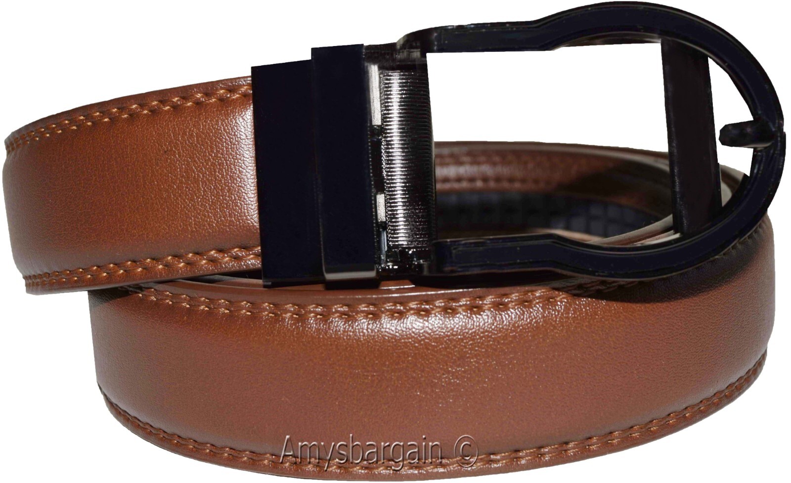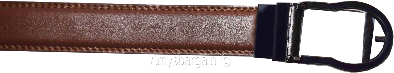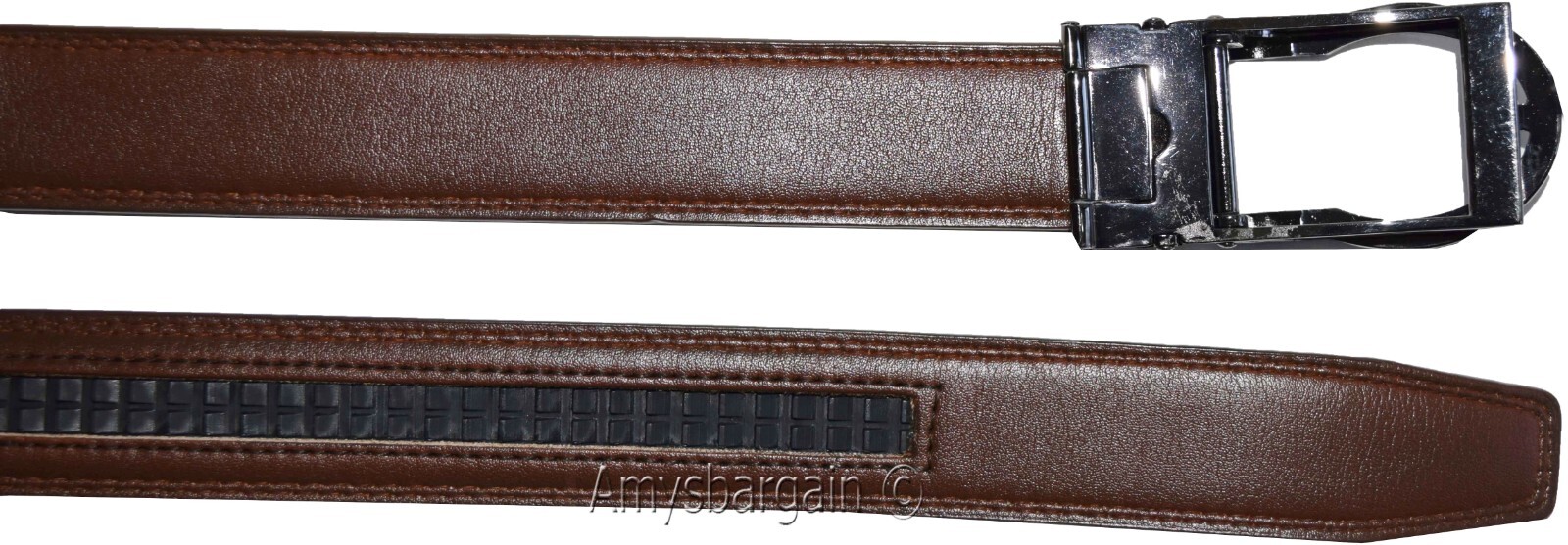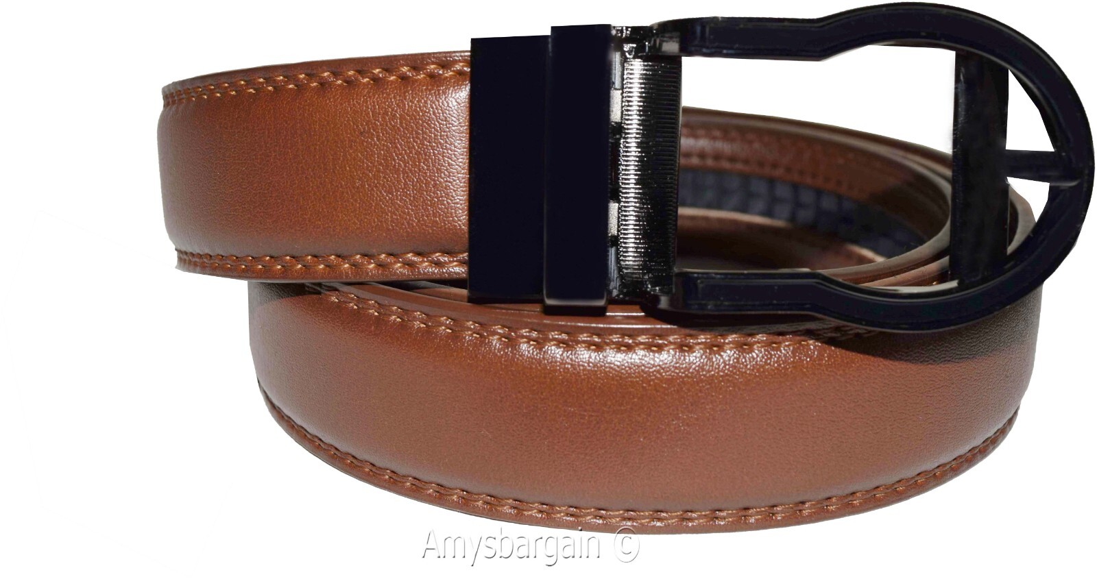 men's brown belt 43" genuine leather dress casual automatic transparant buckle