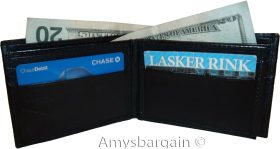 It has an easy in-and-out ID window, 9 card spaces and 2 lined bill fold pockets.