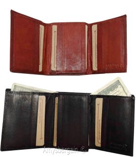 Men's genuine Leather Tri-fold wallet 10 credit debit cards 2 Bill pockets 1 ID