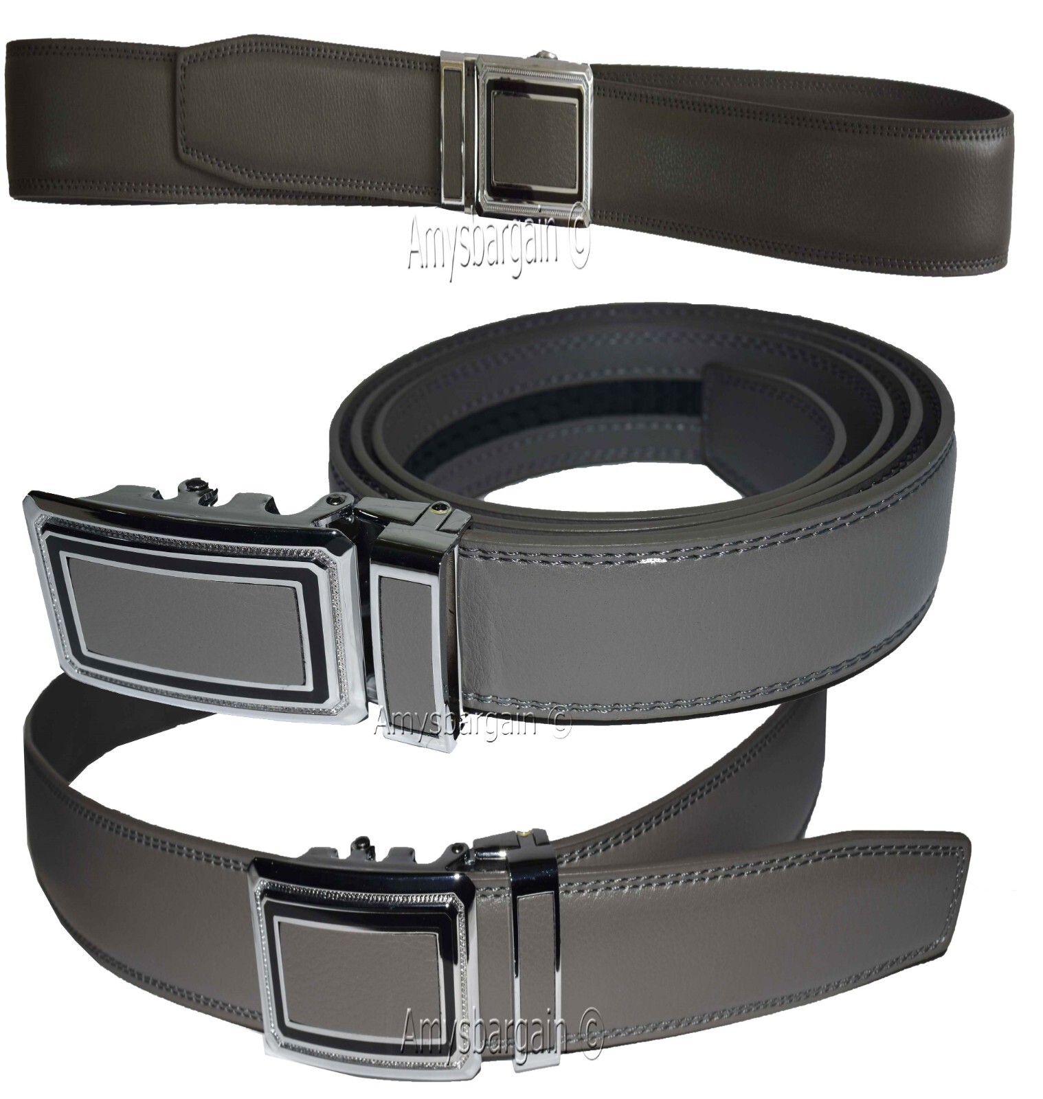 Men's Gray Leather Belt XL Automatic lock Dress / Casual belt adjustable belt.
