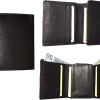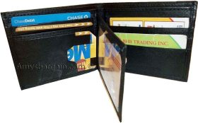 Men's leather 12 card bi-fold wallet 2 bill slot 1 id unbranded new black wallet