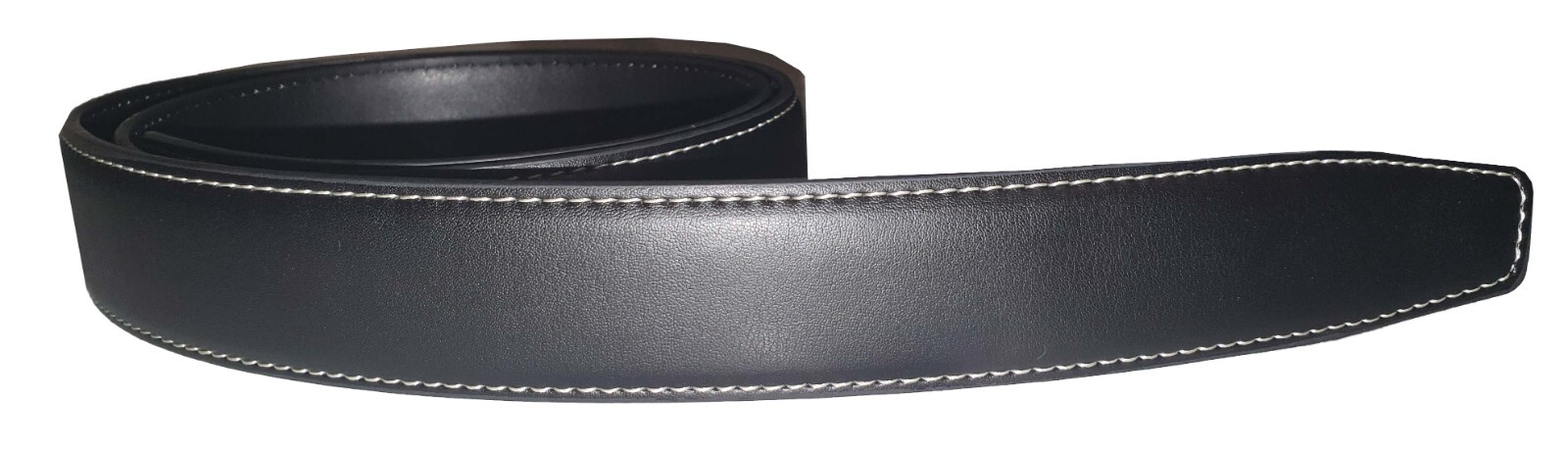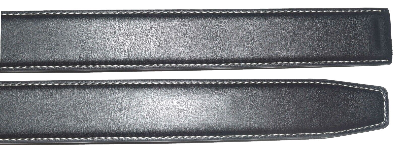 Leather belt strap Automatic sliding buckle Auto-lock Strap only Blk/white.Description: