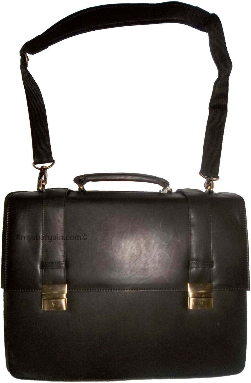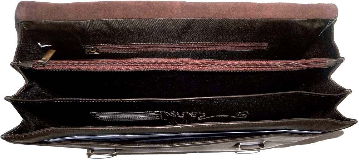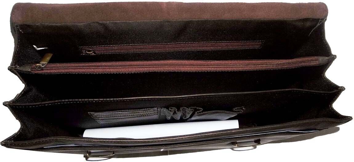 roomy multiple gusseted well-constructed briefcase with two over flap