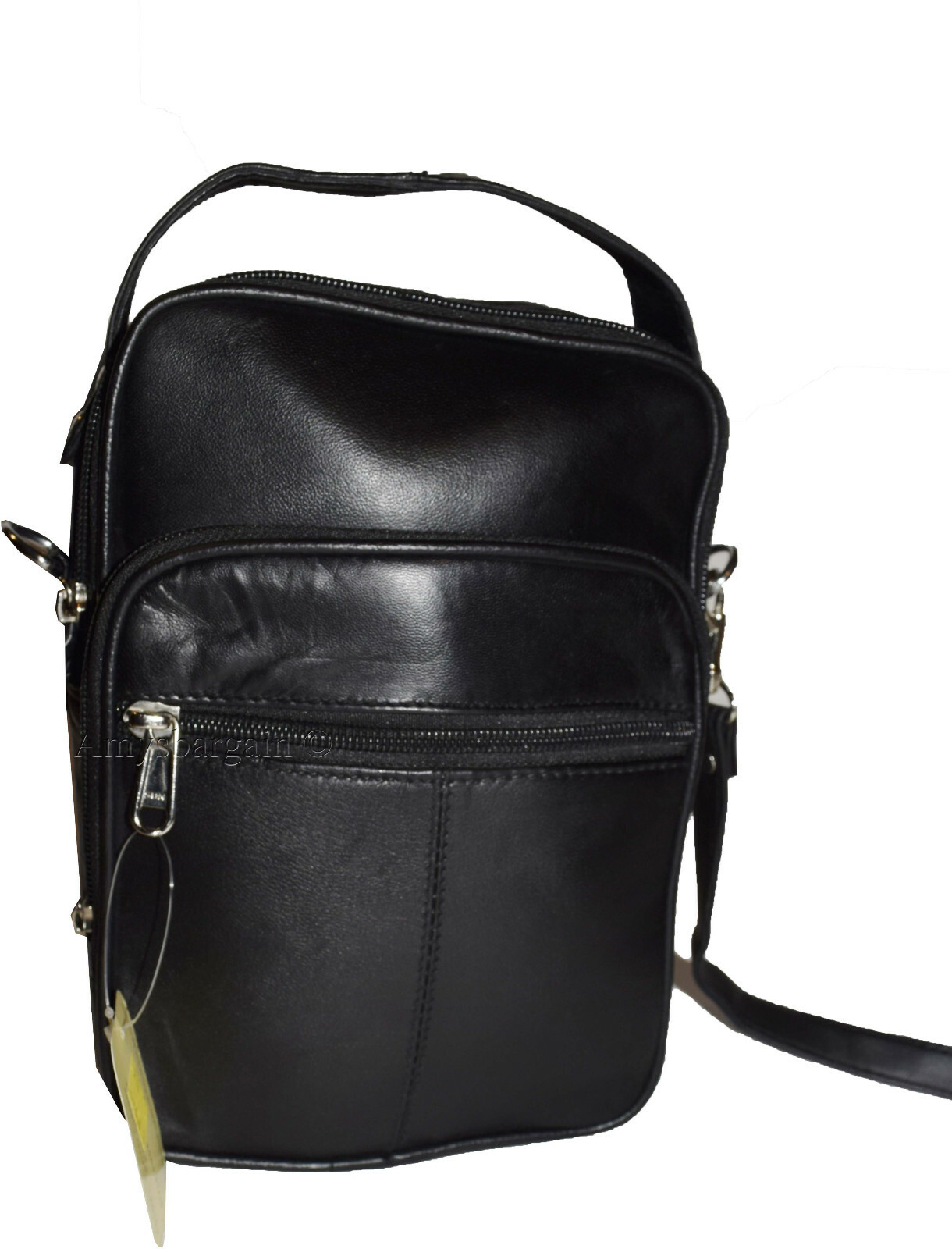 Men's leather handbag, shoulder bag black handbag unbranded leather bag new.Description:This men's handbag is made out of genuine soft leather. It has a main compartment and 2 front pockets. It also h... read more