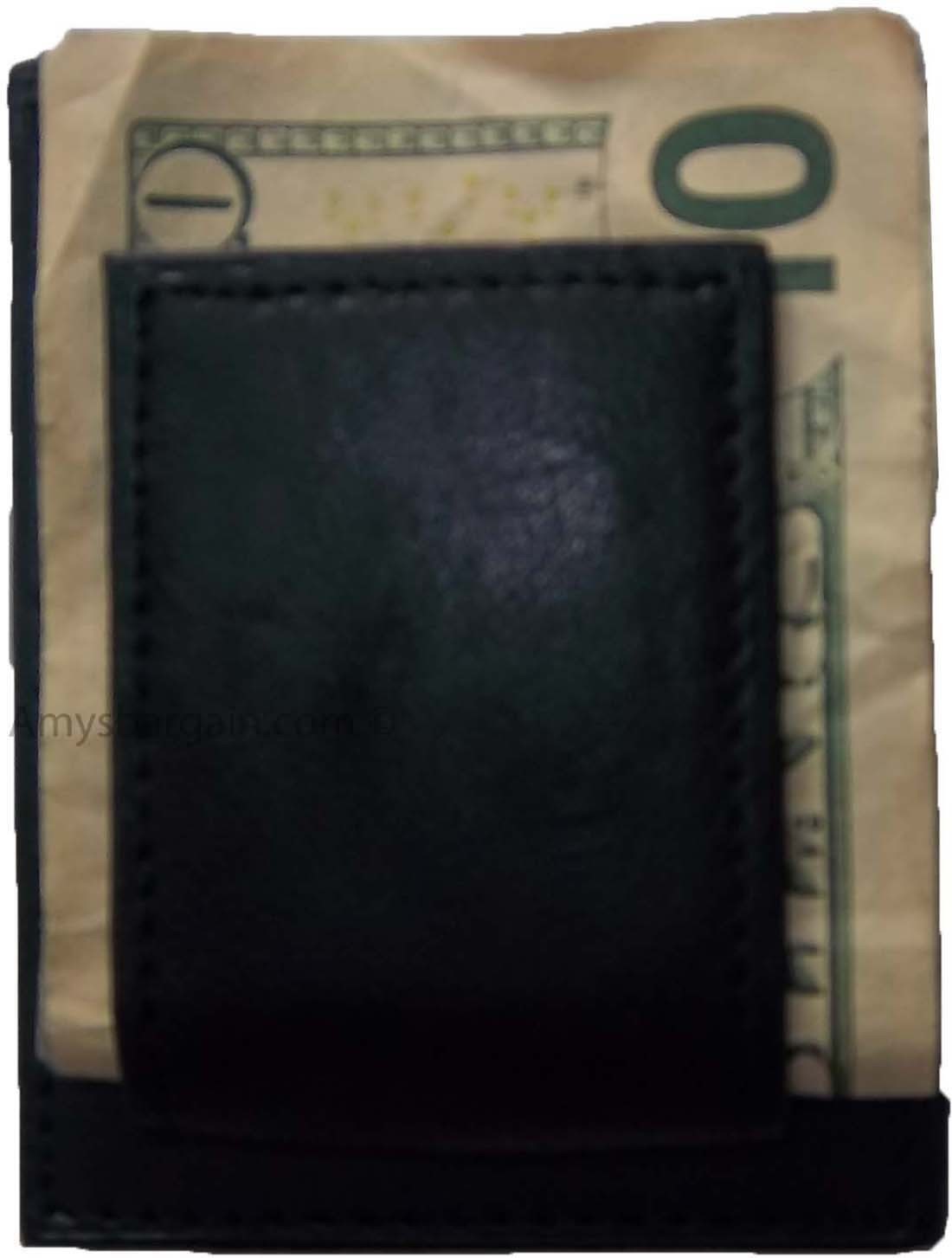 Men's Leather Money Clip, Credit card/ID holder, wallet with magnetic money clip.Description:This stylish money clip wallet would make a great gift item or treat yourselves to it.Item Details:· It is made out of top genuine cowhide leather· 1 photo ID window display· 1 credit card slots· Magnetic money clip to hold cash for your convenience· Size: L 3 ¾ W 2 ¾ inches· Color: Black· Style #: mc46·What's included? leather money clip. Bills, cards and other "Demo items" are not included.