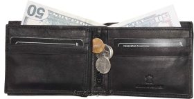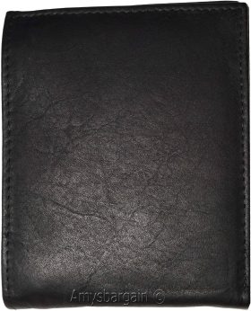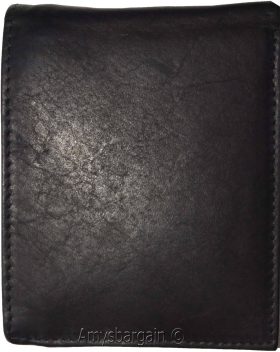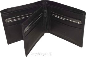 Men's Leather Wallet. Black leather men's Bifold wallet, Zip change pocket #y28z