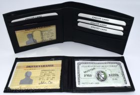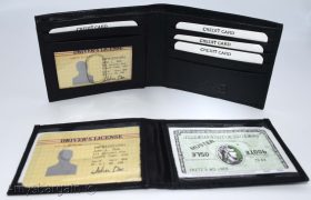 This men's protective RFID unbranded wallet has an ID pocket. It also has 2 billfolds, hidden extra card slots.