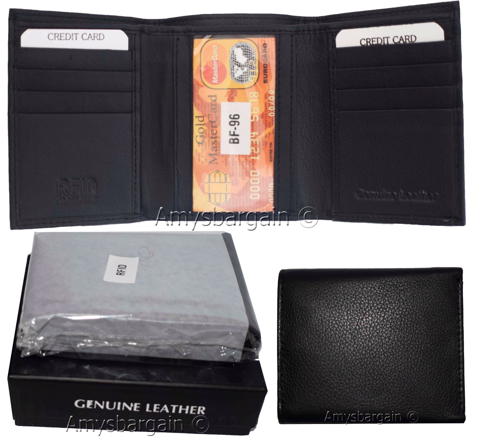 Men's RFID Wallet Genuine Leather Trifold Wallet 2 billfold Brnd New in Box RFID