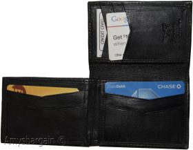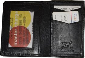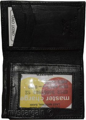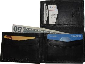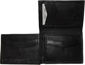 Men's Trifold wallet Genuine Leather 7 credit card ID Billfold Black Wallet BNWT
