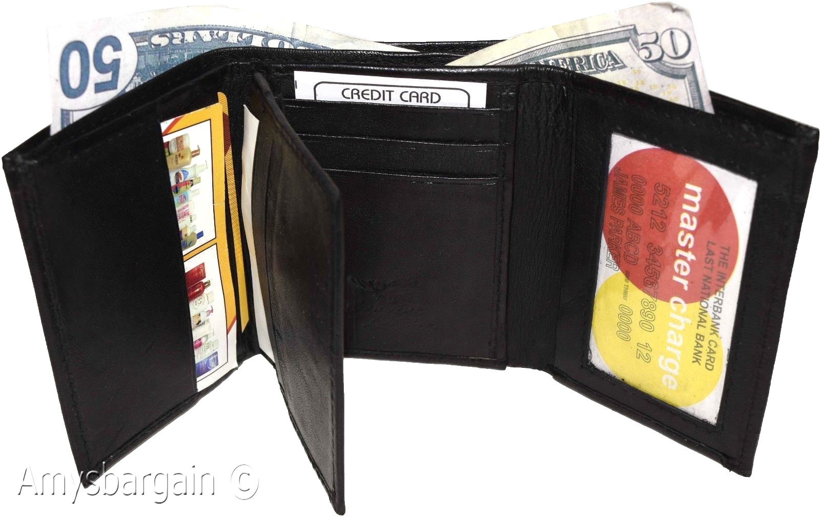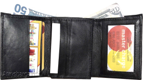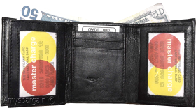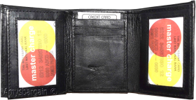 Genuine Leather trifold Men's wallet 9 credit card 2 ID Bill slots Black Wallet.Description:This leather tri-fold men's wallet offers a generous 9 credit card spaces. 2 billfolds, 2 ID windows. It would make a great gift item, or treat yourselves to it.Buy it now! only a few are available at this price!Item Details: