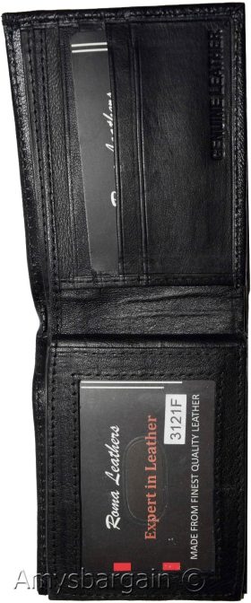 Men's Wallet. Bifold Genuine Leather Wallet,12 card, 1 ID, Black Billfold Wallet