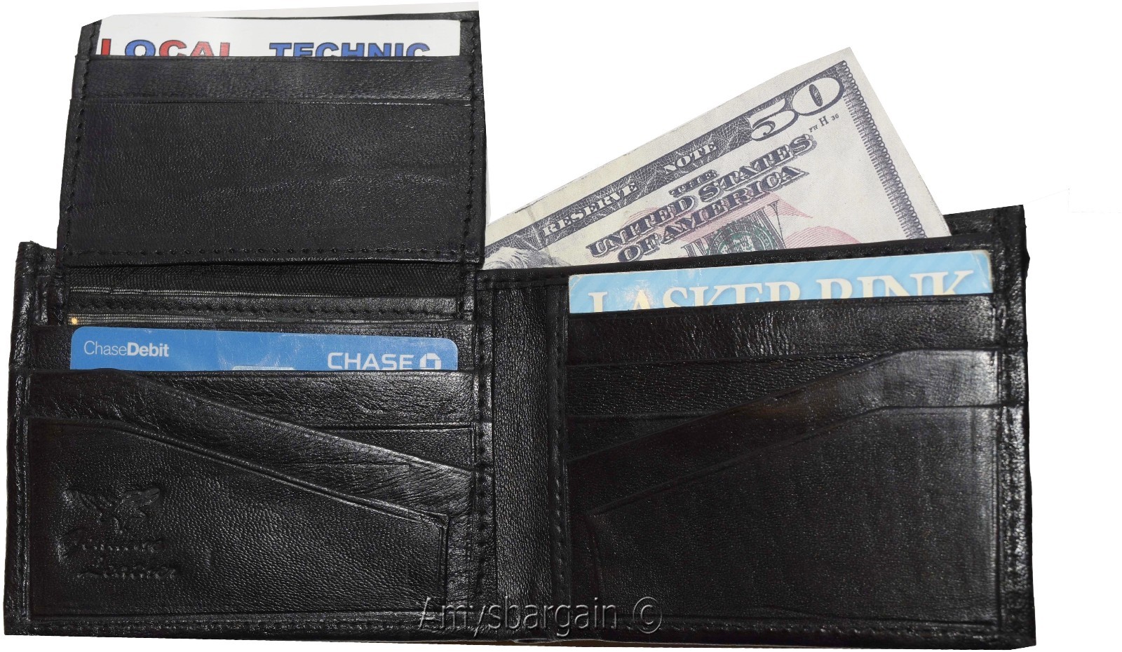 Men's wallet. Brifold Genuine Leather 10 credit card ID Billfold Black Wallet NWT.