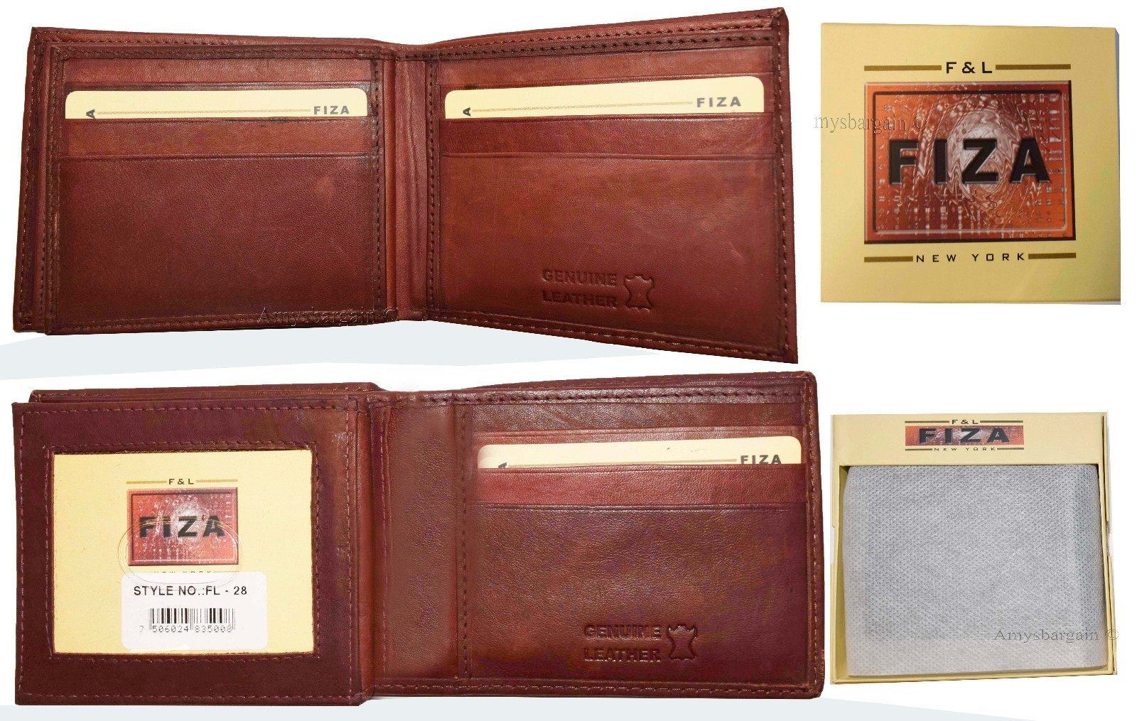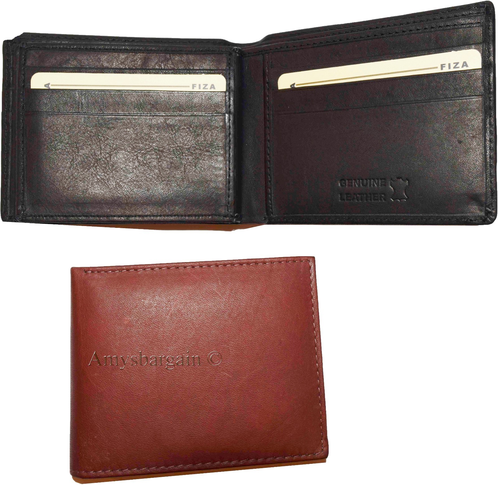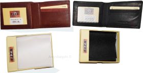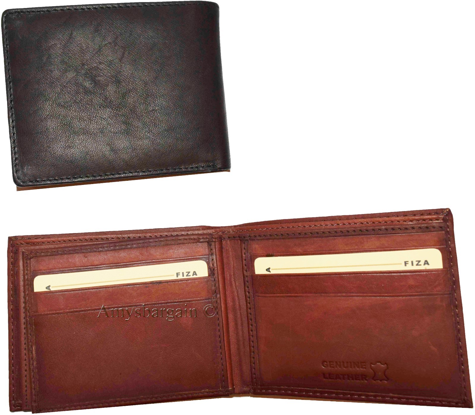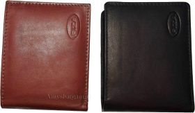 Men's wallet genuine Leather Bifold Black wallet 2 bill slots 9 Cred case In Box