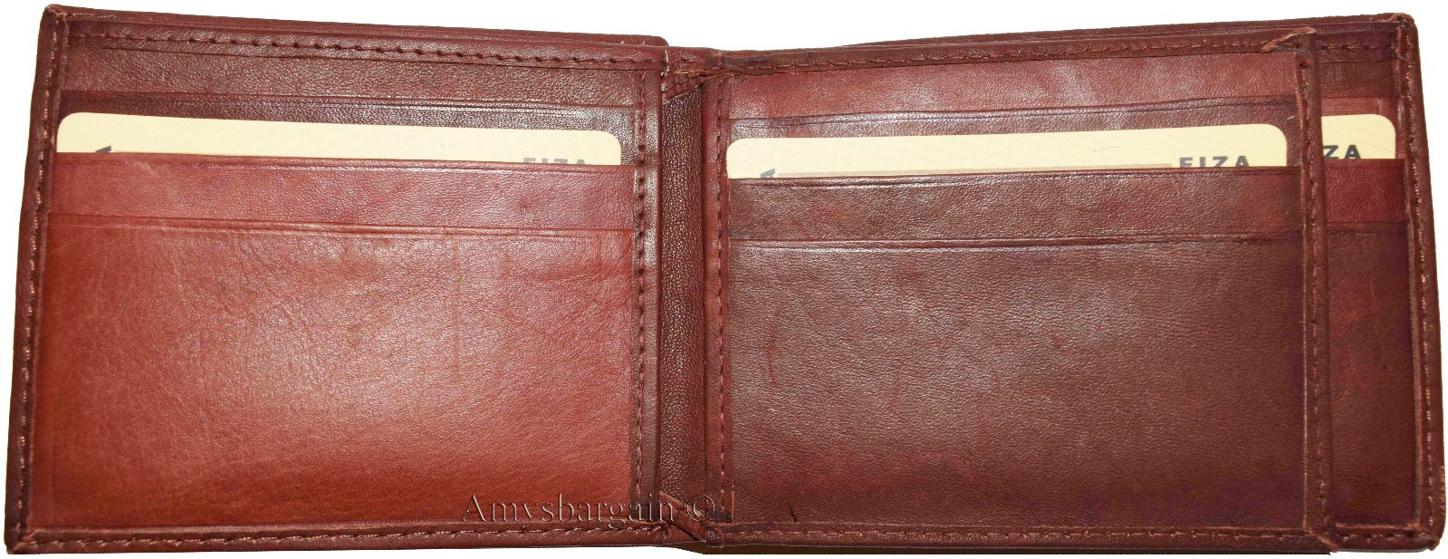 Men's wallet genuine Leather Bifold Tan wallet 2 Bill slots 9 Cards new In Box.Description:This is a Fiza NY very stylish soft and strong leather men's wallet with 1 flip side ID case. This wallet would make a great gift item, or, treat your selves to it.This wallet would make a great gift item, or, treat yourselves to it.It has an ID window, 9 card spaces and 2 billfold pockets.Act now! it won't last!Item Details: