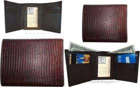 Men's Wallet Leather Trifold wallet Lizard Printed wallet ID 9 card 2 bill slots.