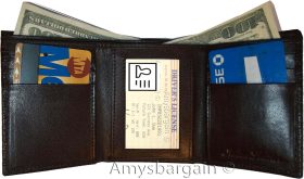 It has an easy in-and-out ID window, 9 card spaces and 2 lined bill fold pockets.