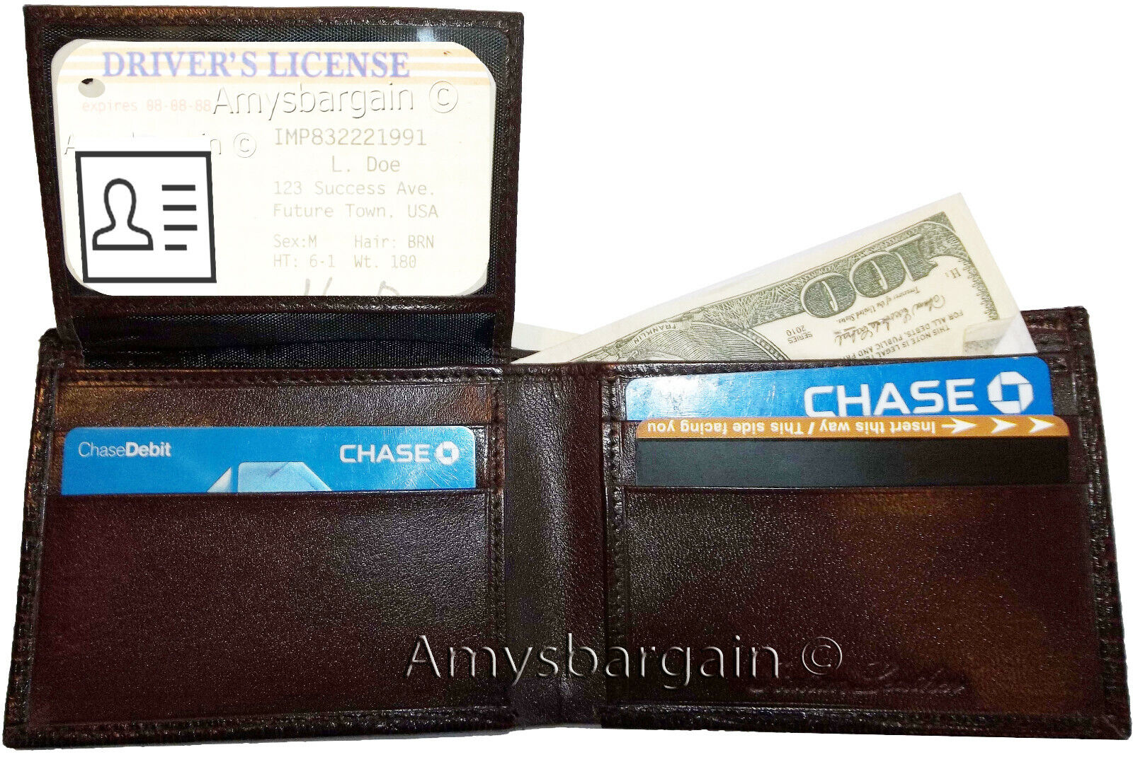 This is a very stylish lizard skin printed leather men's wallet with an easy-in-out ID case. It has 2 billfolds and 6 card slots. This wallet would make a nice gift for that special someone that has it all, or treat your selves to its qualities.