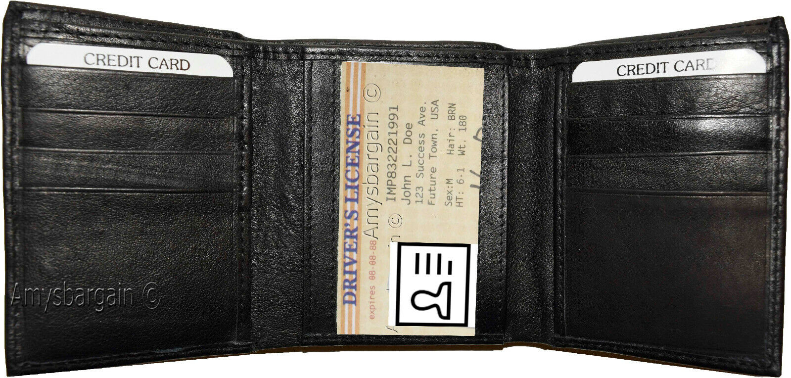Description:This man's quality soft calfskin leather wallet comes in the box. It would make a great gift item, or treat yourselves to it.This trifold men's wallet is a full size wallet with ID window and 6 card spaces.Act now! only a few left.Item Details: