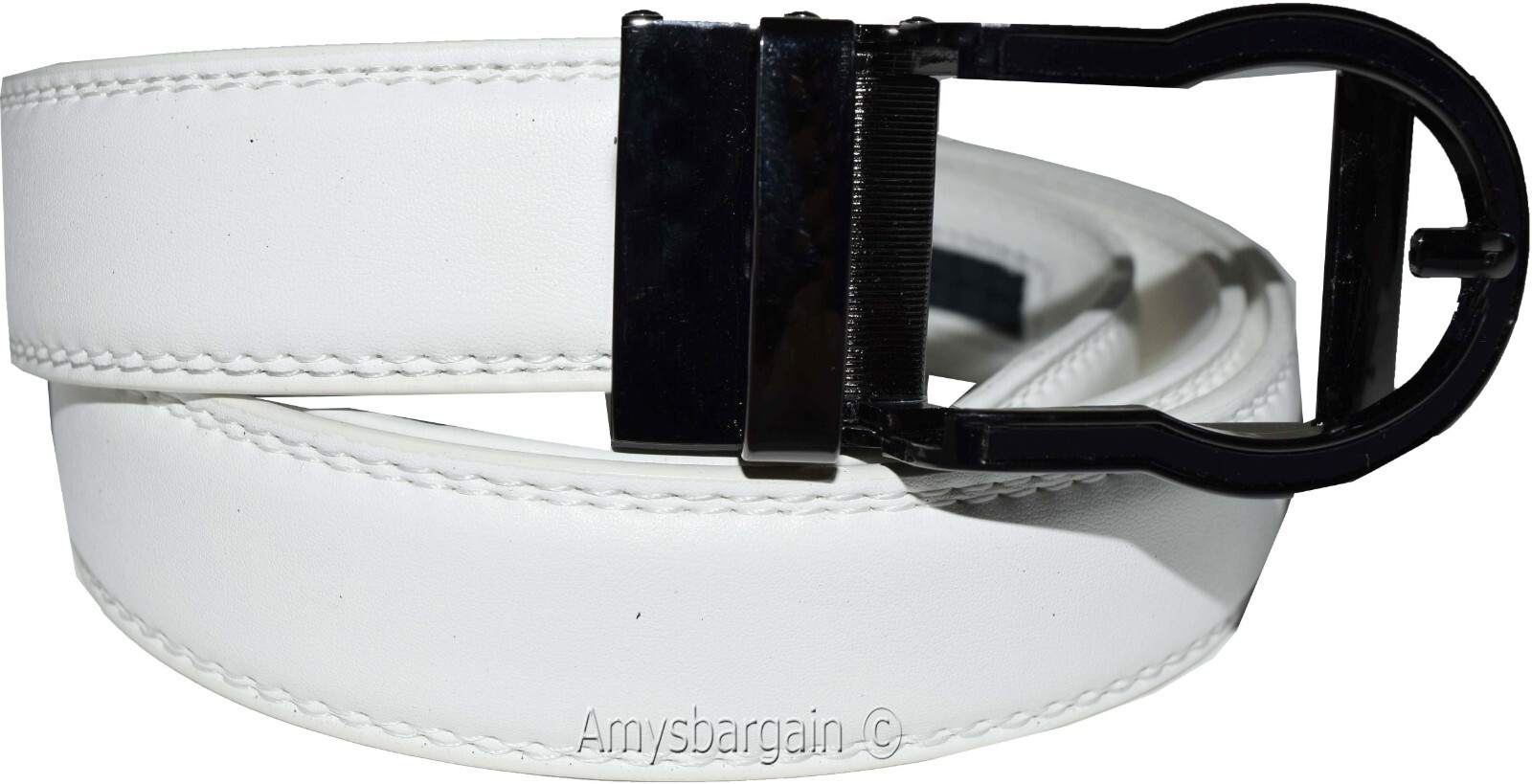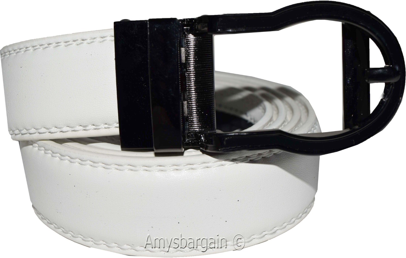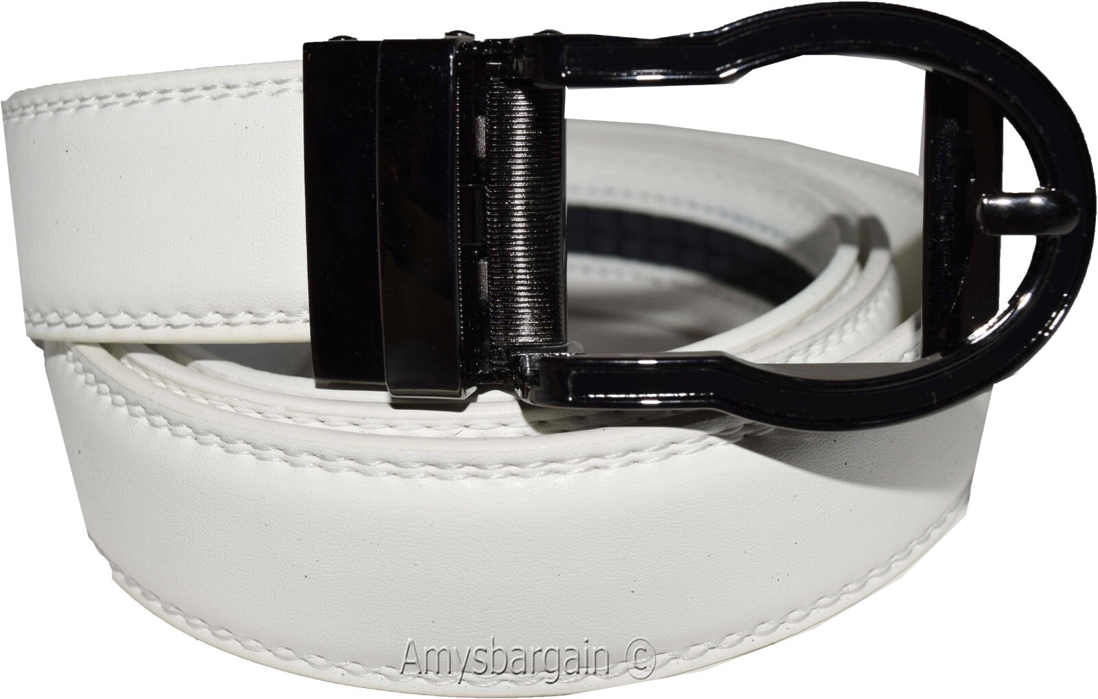 men's white belt 43" genuine leather dress casual automatic transparant buckle.