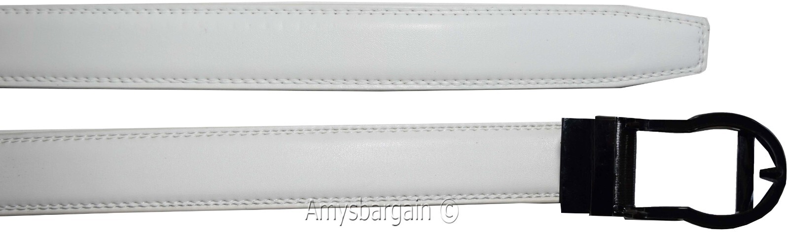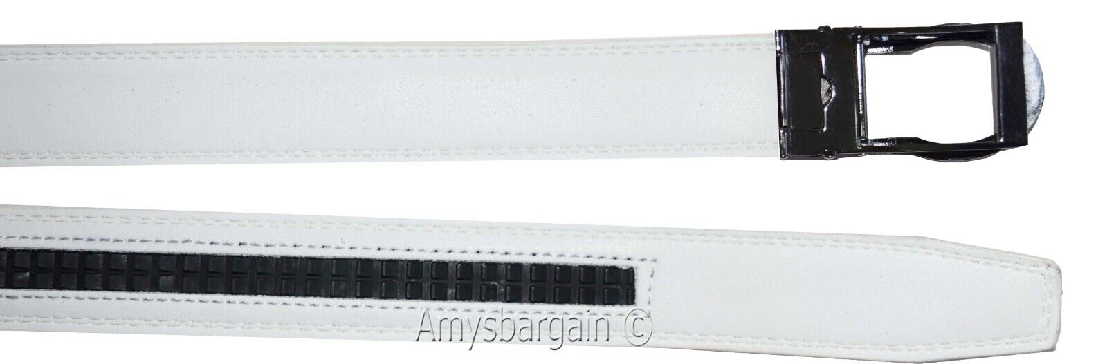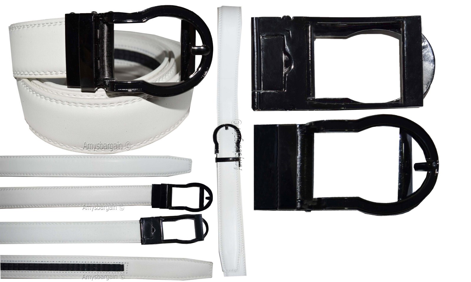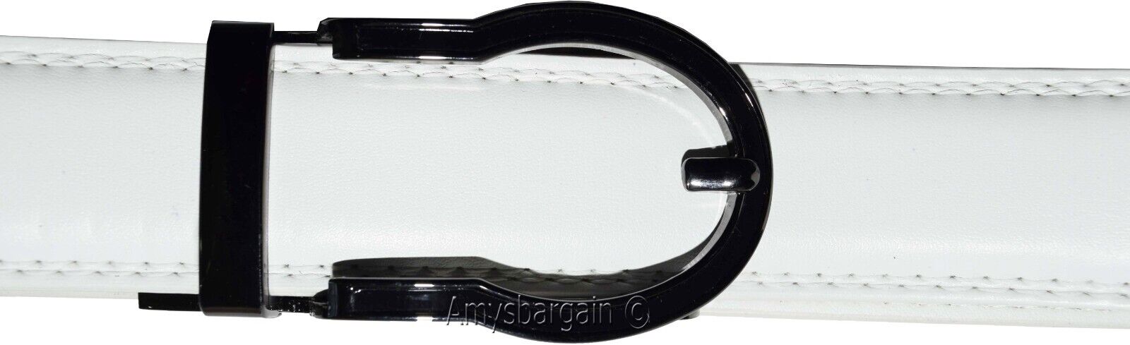 men's white belt 43" genuine leather dress casual automatic transparant buckle.