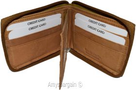 Men's Zip around wallet. Leather wallet Center piece 9 credit card ID 2 Billfold.Description:This is a men's zip around wallet. It has 9 credit credit spaces an ID window. It would make a great gift for that special someone. Or, treat yourself to it.Item Details: