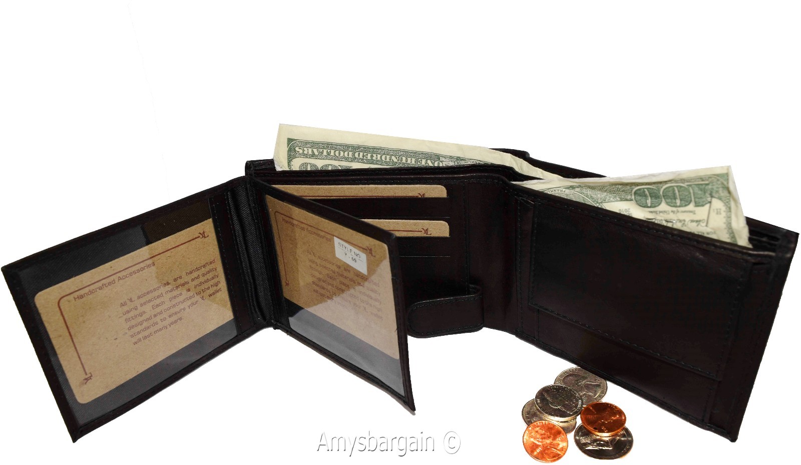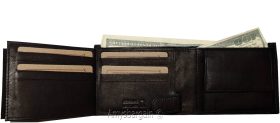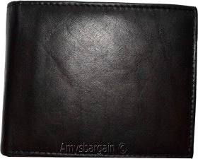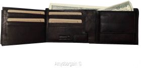 Men'sBlack Leather Wallet Bifold Wallet 2 Bill spaces 2 flip-side ID Coin case