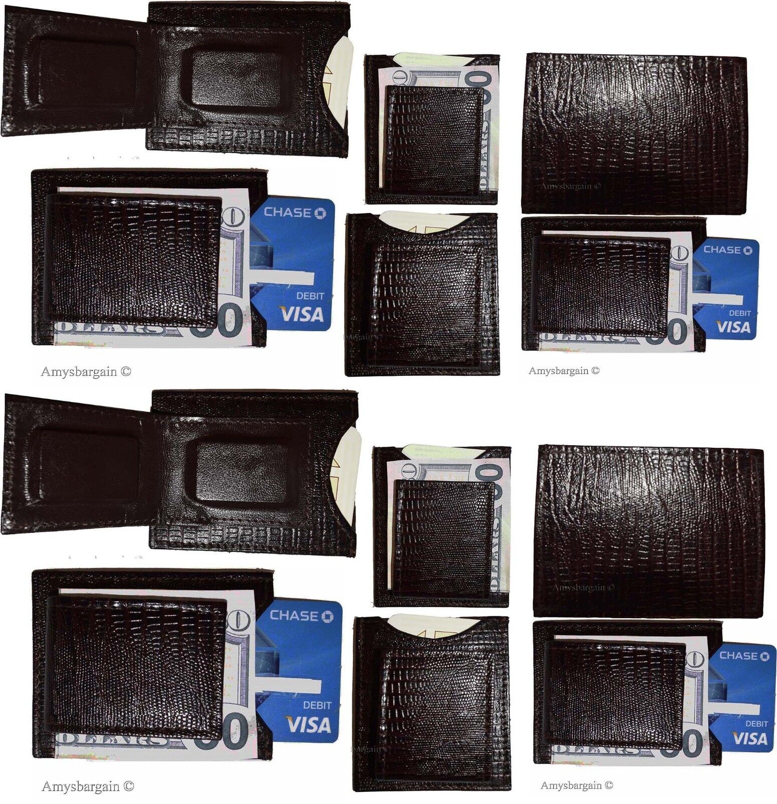Money clip Brown Lizard skin printed leather unbranded new money Clip Lot of 12.