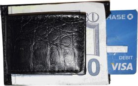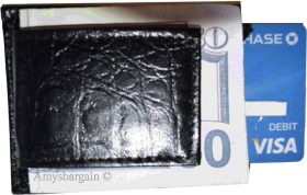 money clip crocodile skin printed leather credit card/bills fits all types bills.Description:This very beautiful black crocodile skin printed leather money clip is easy to use. It is stylish, small and lightweight. This money clip would make a great gift item. Or, treat yourselves to it.It fits all types of national and international currencies.Item Details: