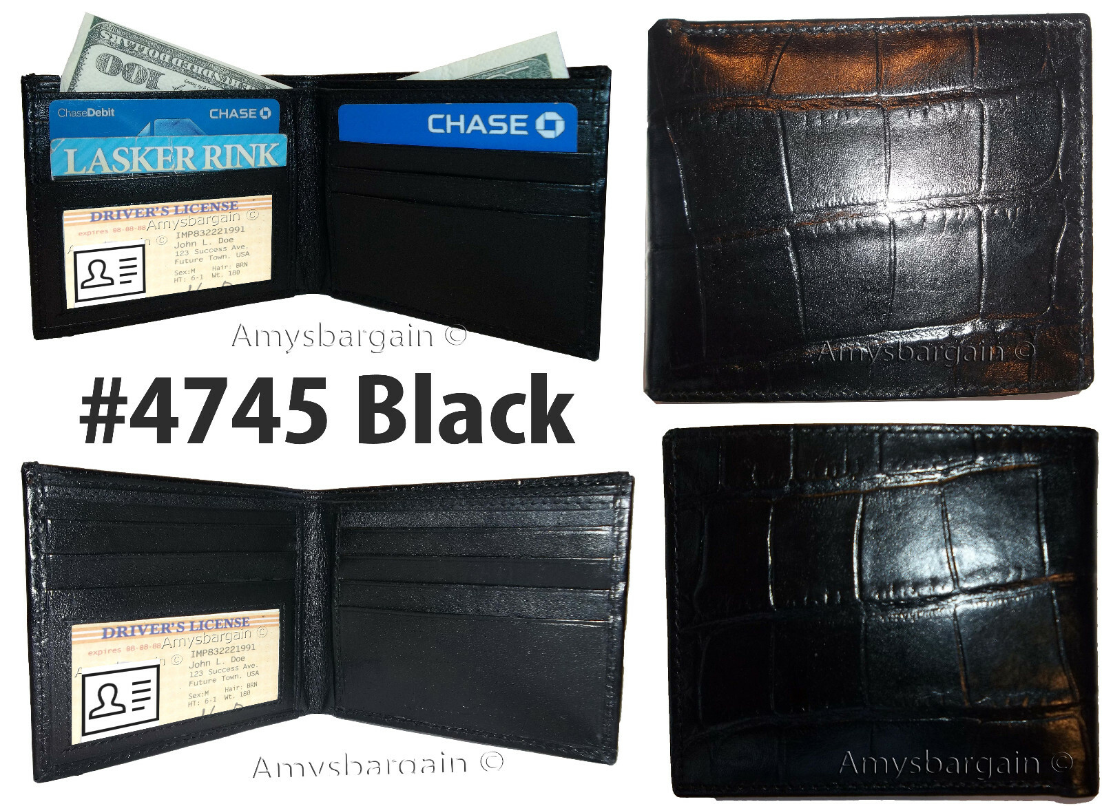 Description:This is a very stylish crocodile skin printed leather mans wallet with an easy-in-out ID case. It has 2 billfolds and 6 card slots. This wallet would make a nice gift for that special someone that has it all, or treat your selves to its qualities.It has an easy in-and-out ID window, 6 card spaces and 2 lined bill fold pockets.Item Details: