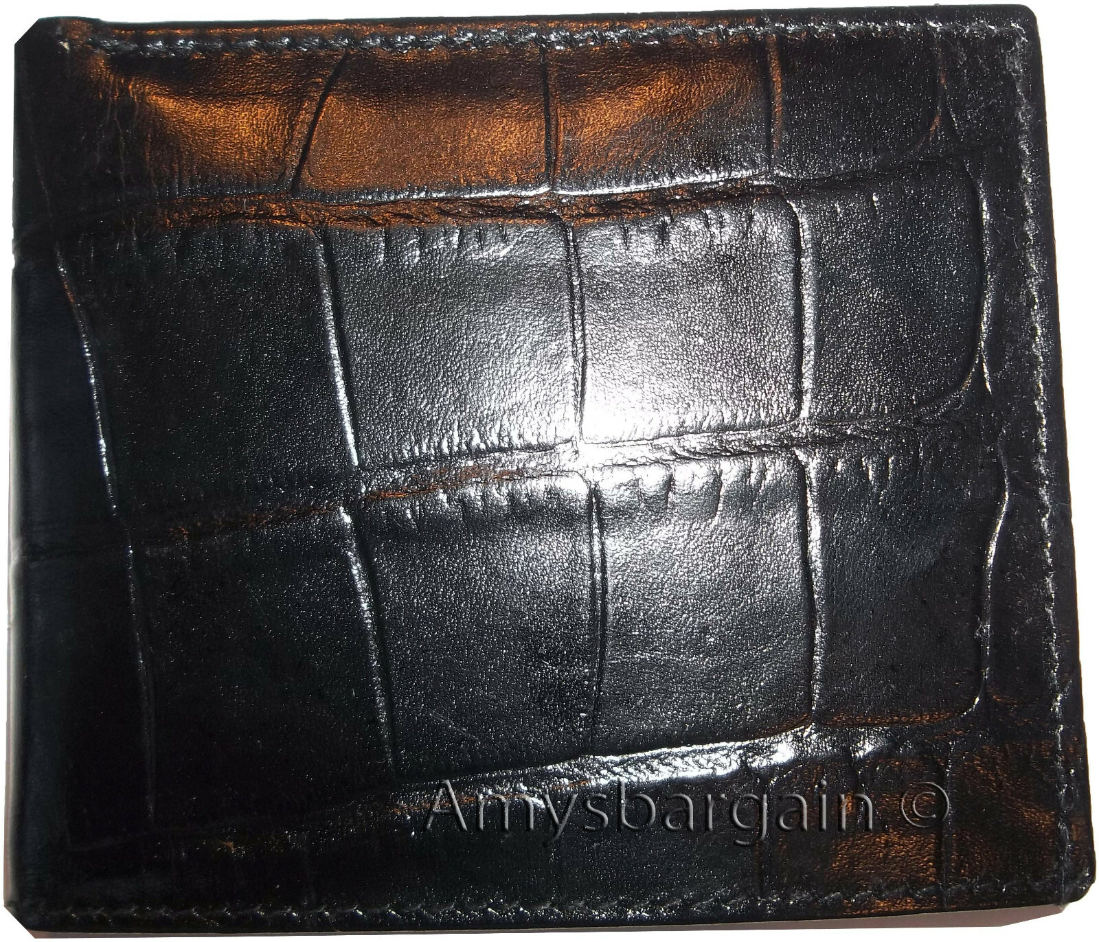 New Crocodile Skin Printed Leather man's bi fold wallet 2 bill slots 6 card 1 ID.