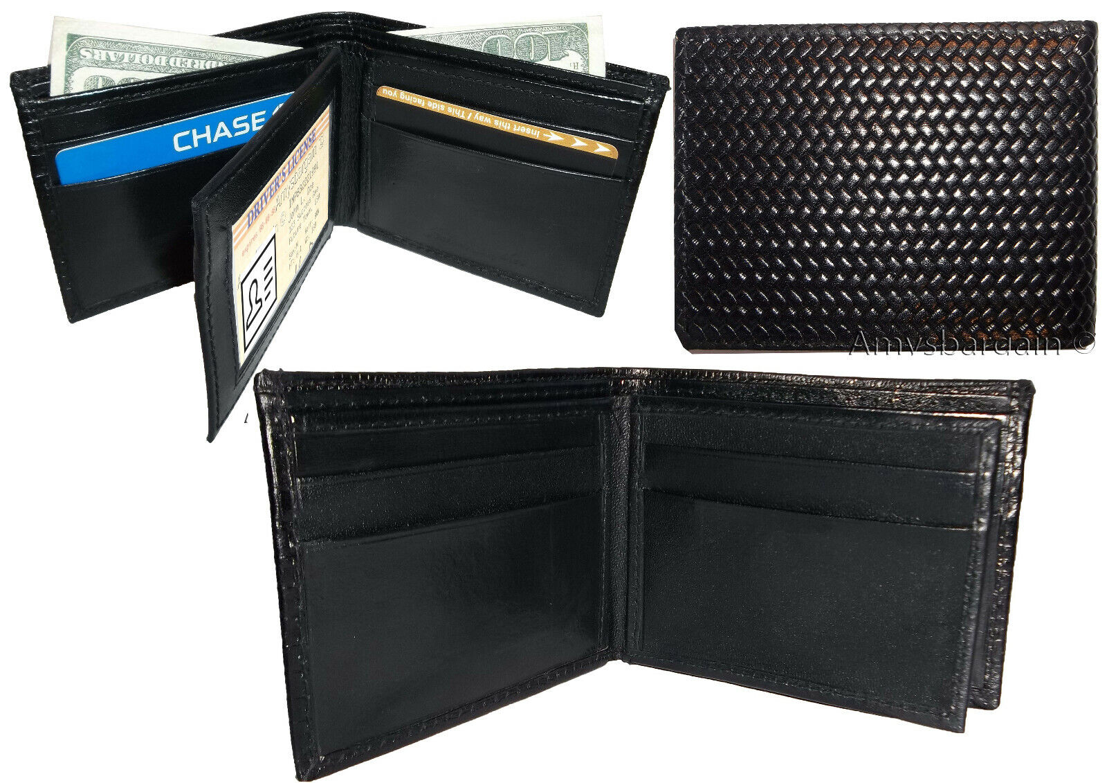 New Italian styled Woven printed leather man's bi-fold wallet 9 Credit card+ID .