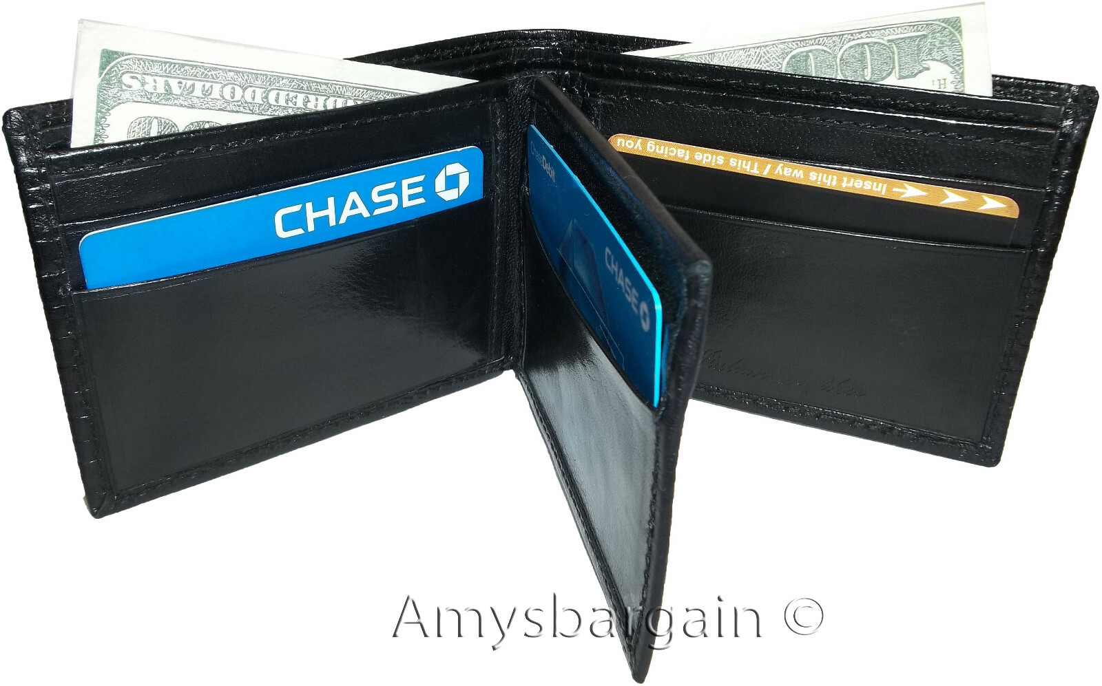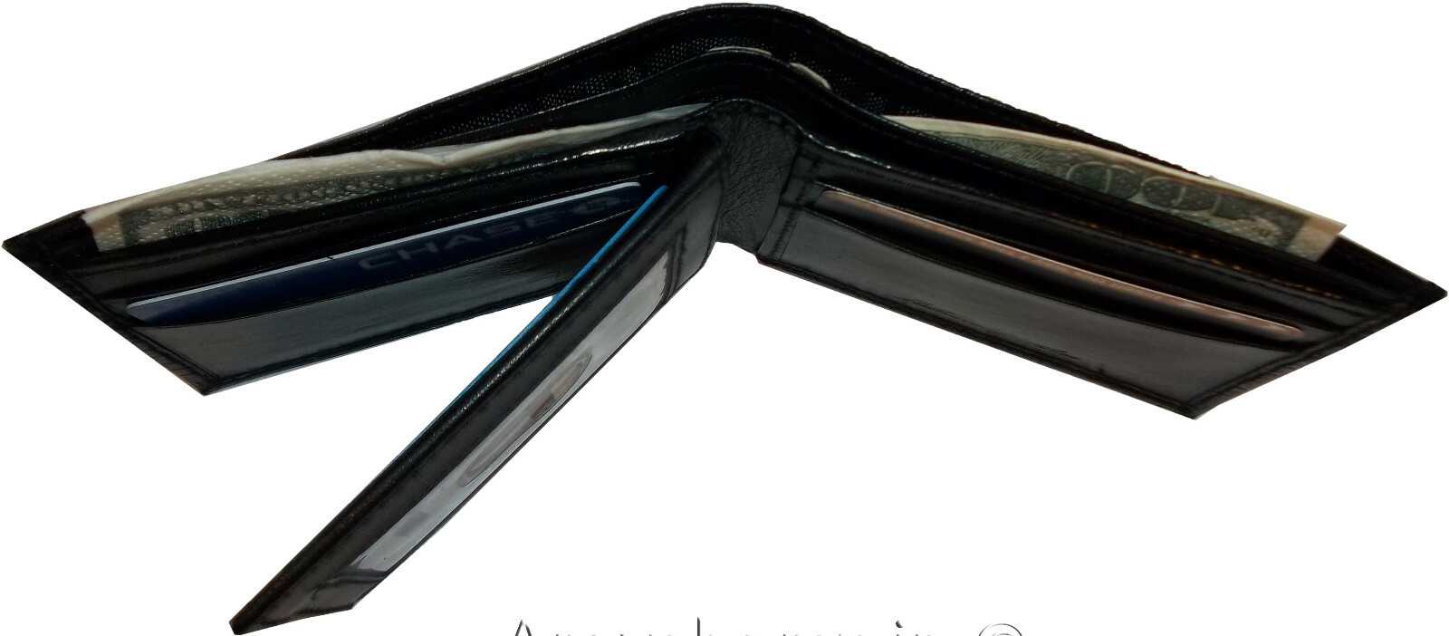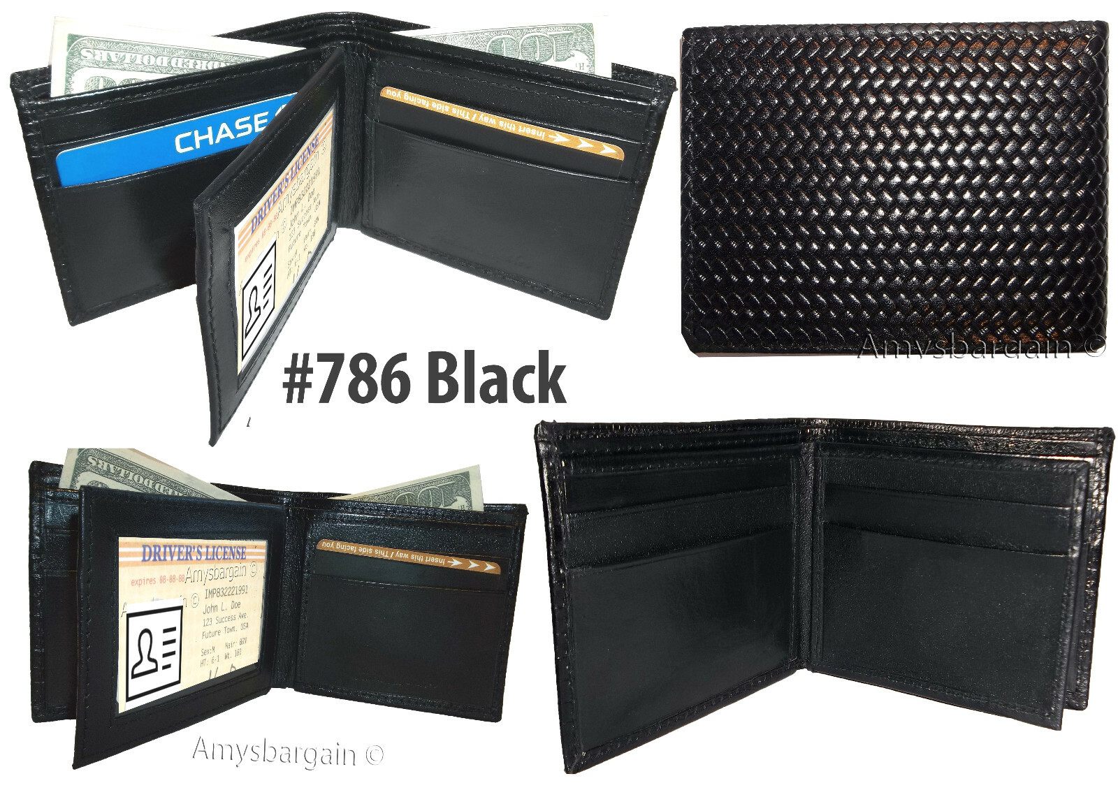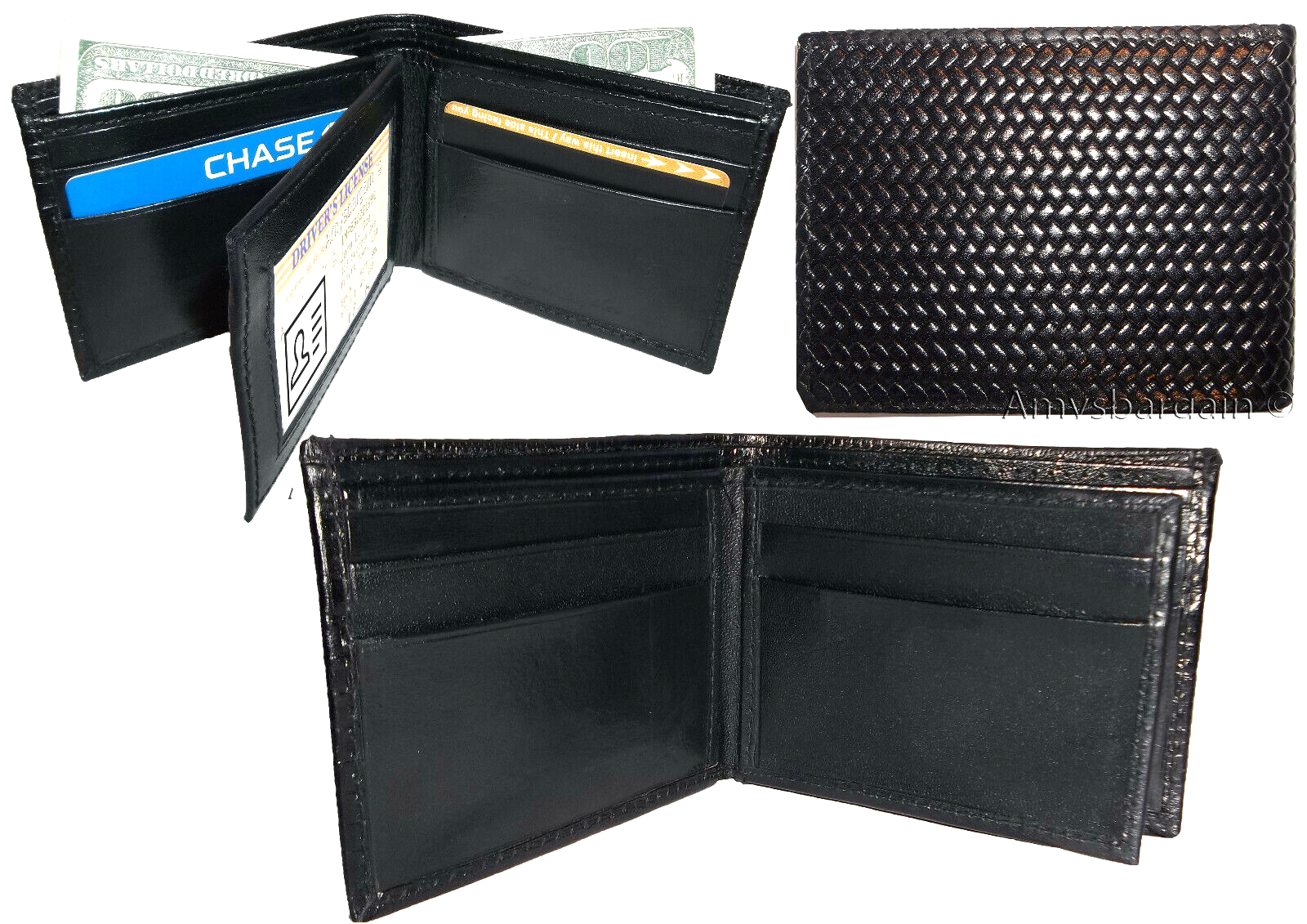 This is a very stylish woven printed leather mans wallet with an easy-in-out ID case. It has 2 billfolds and 9 card slots. This wallet would make a nice gift for that special someone that has it all, or treat your selves to its qualities.