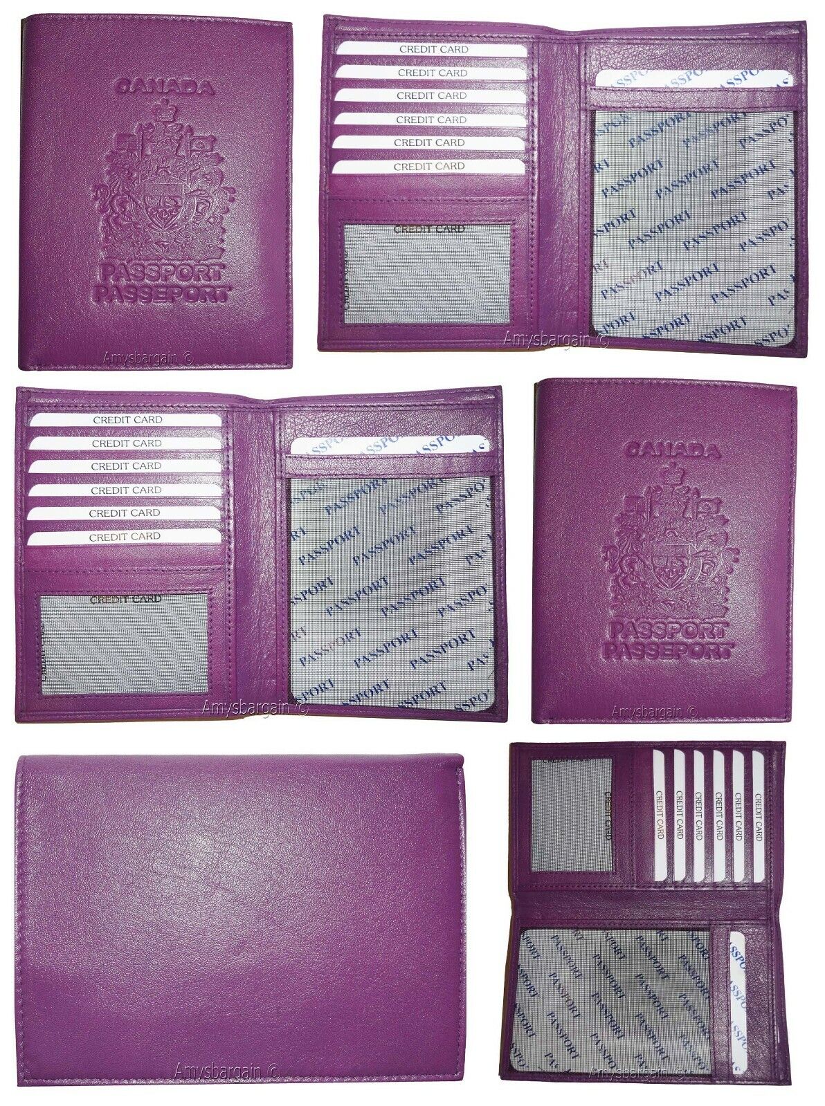 New Lamb skin Canadian Leather passport case wallet credit card case ID holder.Description:This is a lambskin leather passport case the Canadian logo printed in the front with realistic print. It has 6 built in credit card spaces and a transparent ID window.This wonderful passport case is an exceptional value at this price!It will not last at this price!Item Details: