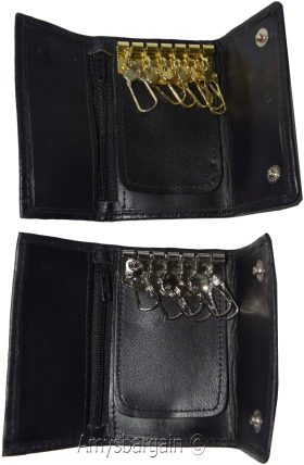 New Leather Key Chain; Zip Coin Case; Key Ring; key chain for men and women #56.Description:This 6 ring leather key chain can help organize your door keys, car keys and all your other keys. It can also hold some stamps and coins for that parking meter or whatever you may need change for.It fits easily in your pocket until you need it.It has a back coin pocket and a hidden zip inside pocket.Item Details: