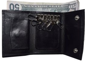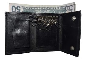 Description:This 6 ring leather key chain with a billfold pocket can make organizing your keys a lot easier.It can organize and safe-keep keys and it can also hold some coins and bills for that parking meter or whatever you may need change or money for.It fits easily into your pocket so you'll have it when you need it.Act now!Item Details: