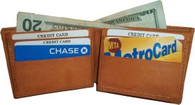 New Man's Bi fold Leather Wallet 12 Credit Cards 2 ID 2 Sued lined Bill slots BN