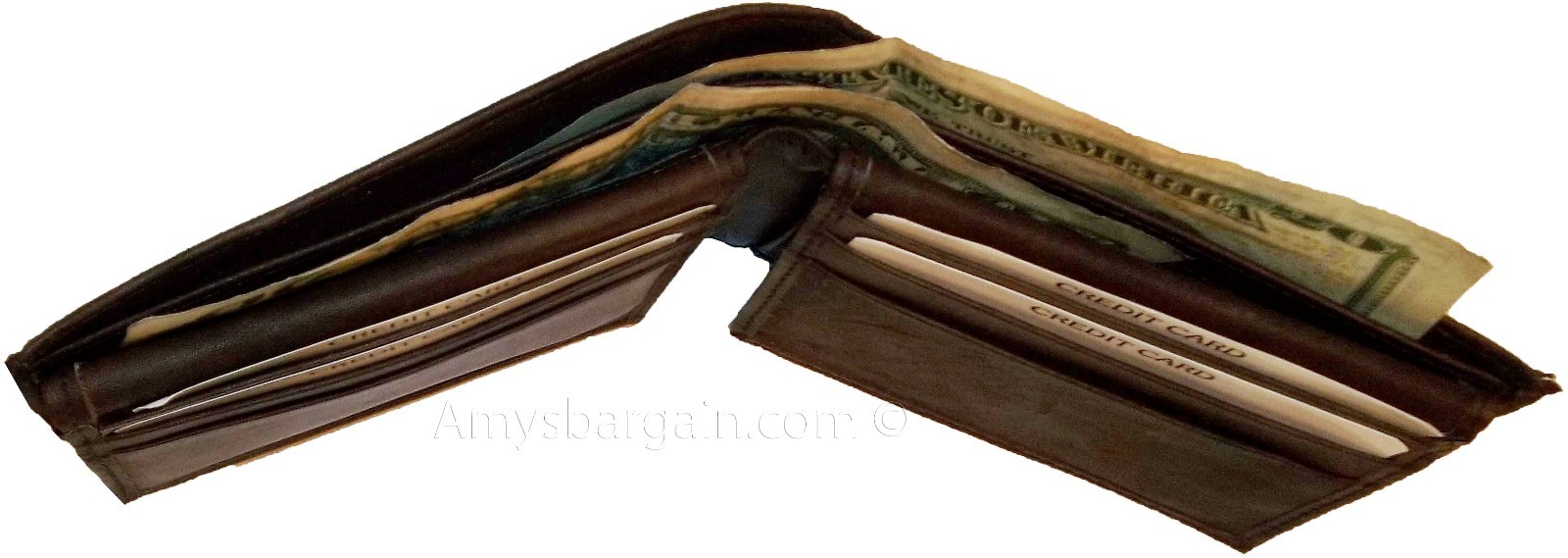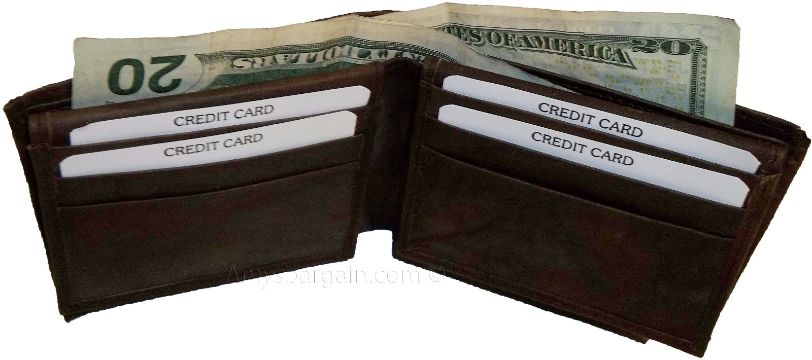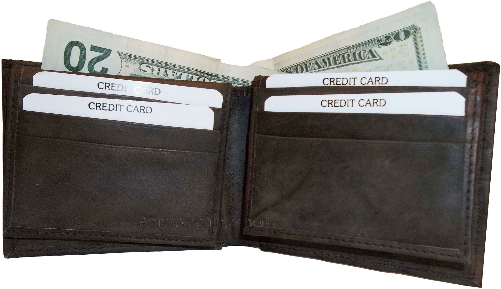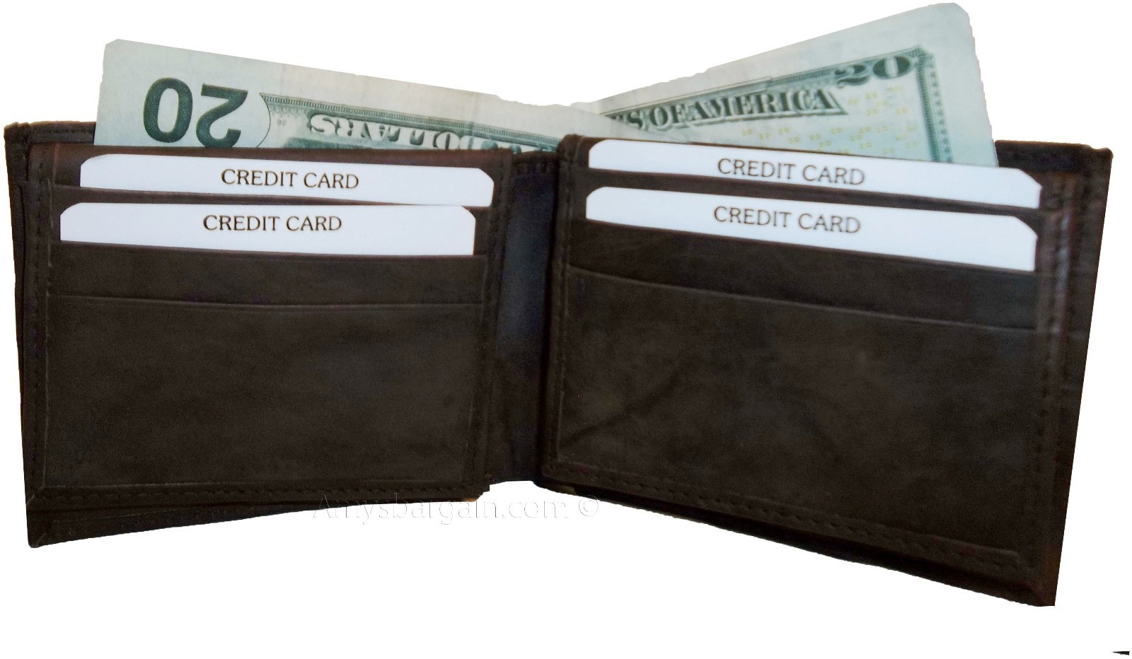 This wallet is made out of fine quality fine grain cowhide leather. This men's wallet has 2 easy in-and-out I'D windows, 12 card spaces and 2 suede lined billfold compartments.