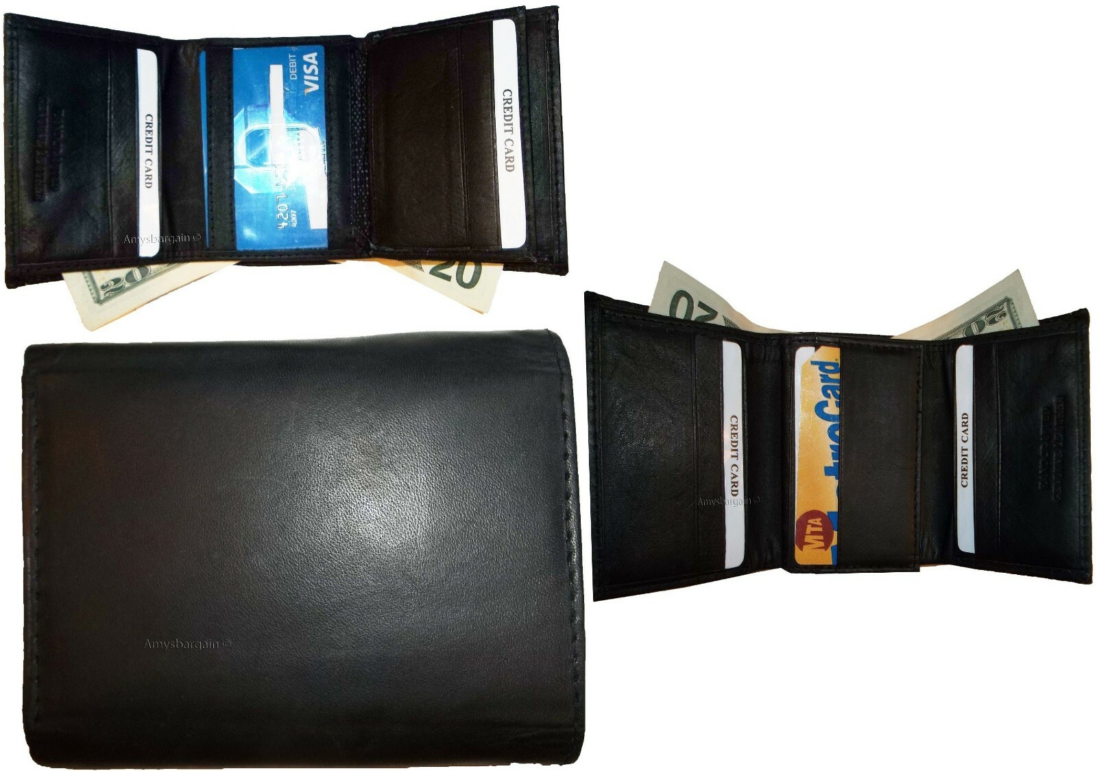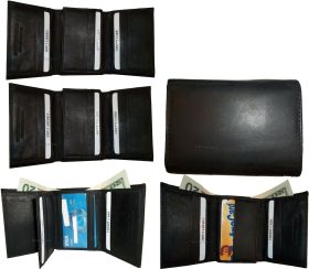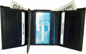 New man's leather tri-fold wallet 12 credit debit ATM cards ID 2 bill slots