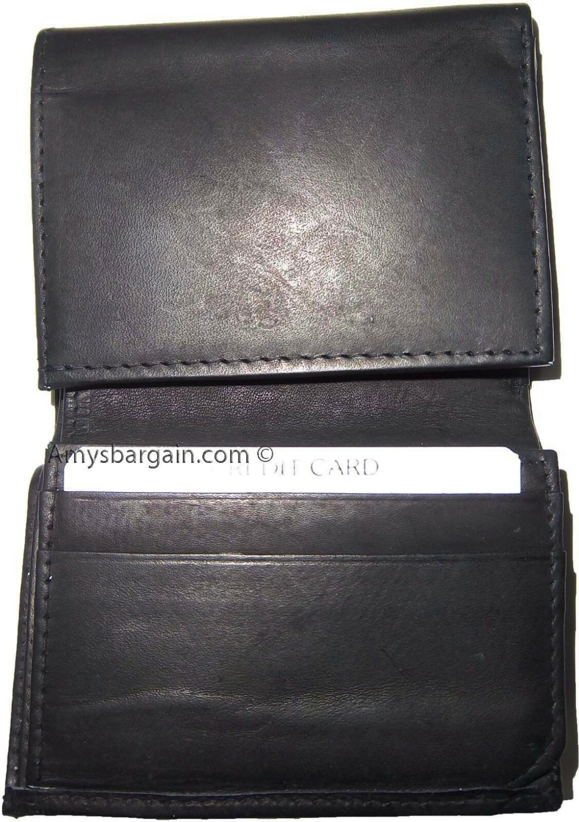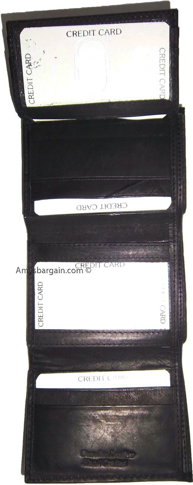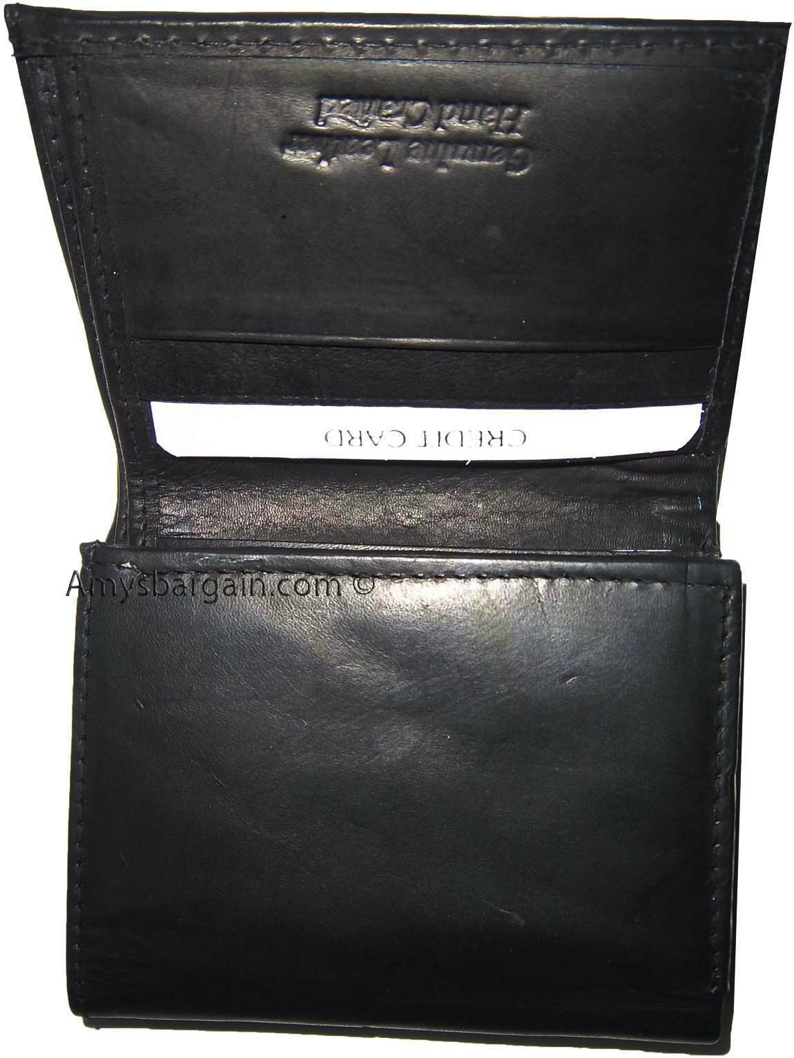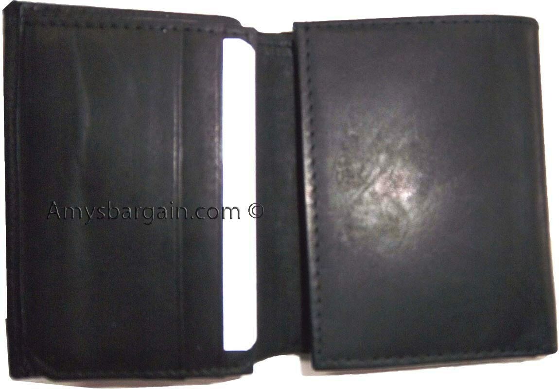 New man's leather trifold wallet Black 8 credit card 2 bill spaces wallet 2 ID.
