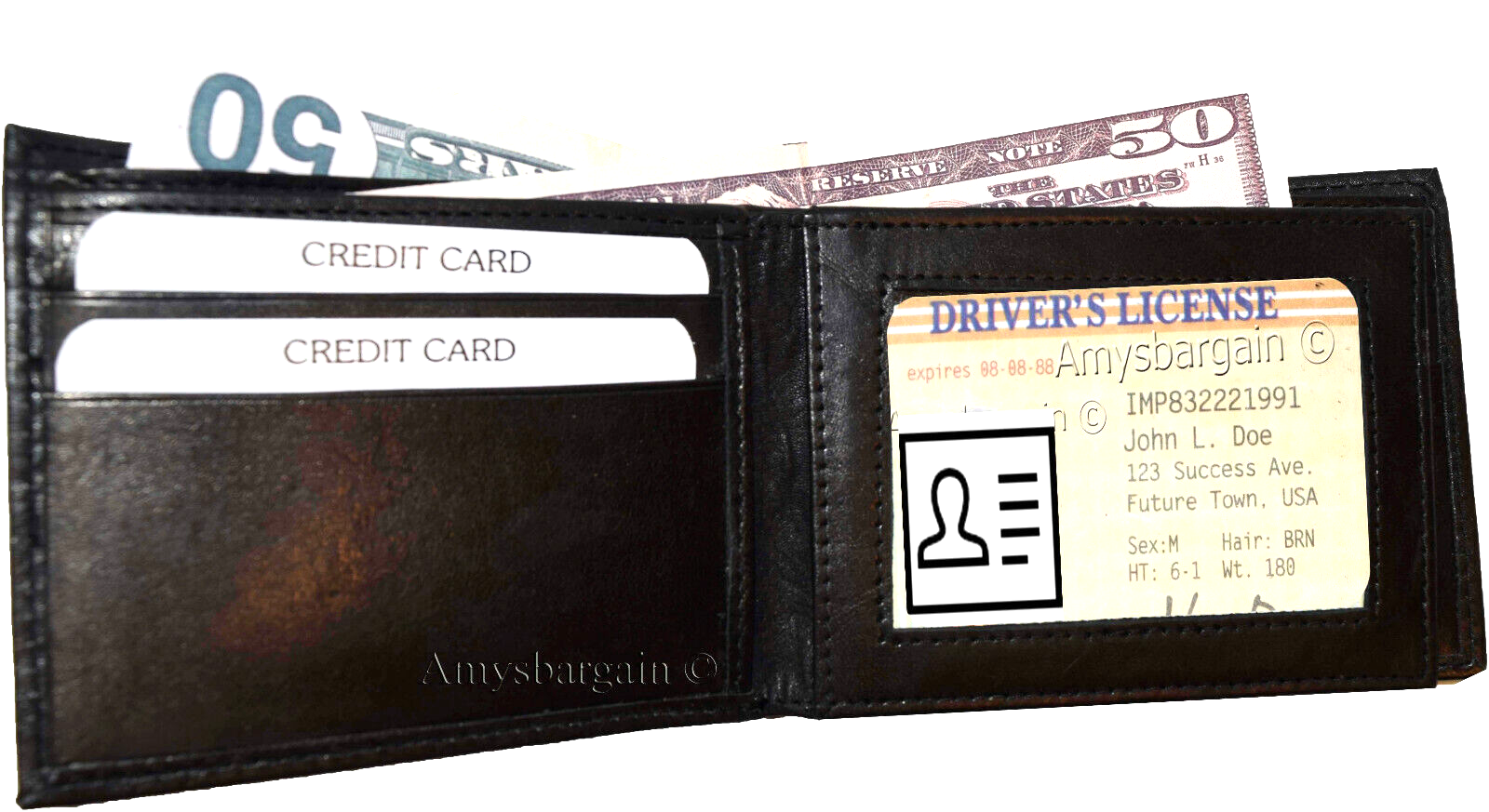 ·What's included? Leather wallet. Bills, cards and other "Demo Items" are not included.Style #: 786BF4.Manufacturers Suggested Retail Price (MSRP) $29.95. each.Buy it now it won't last!