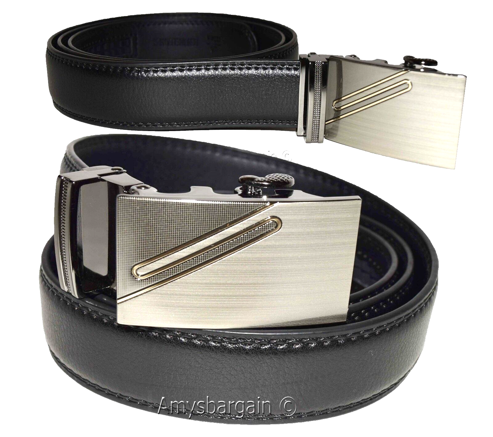 new men's belt leather dress belt w/ auto lock sliding buckle XL belt length.Description:This is a new "Quick-Lock" all-in-one dress and casual belt. It is a fine quality and very fashionable men's le... read more