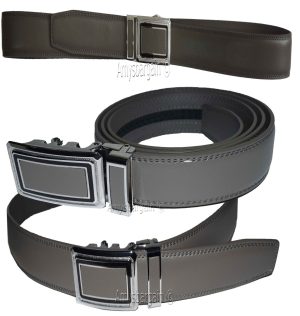 New men's black leather dress belt auto lock sliding buckle genuine leather belt.