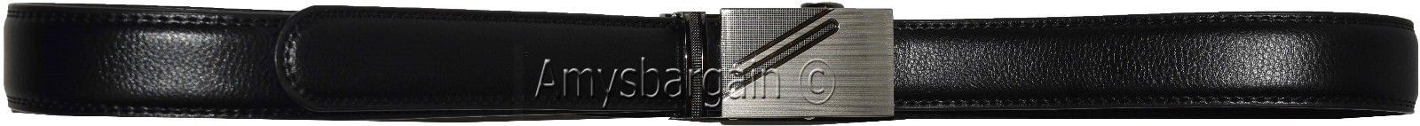 New men's black leather dress belt auto lock sliding buckle genuine leather belt.