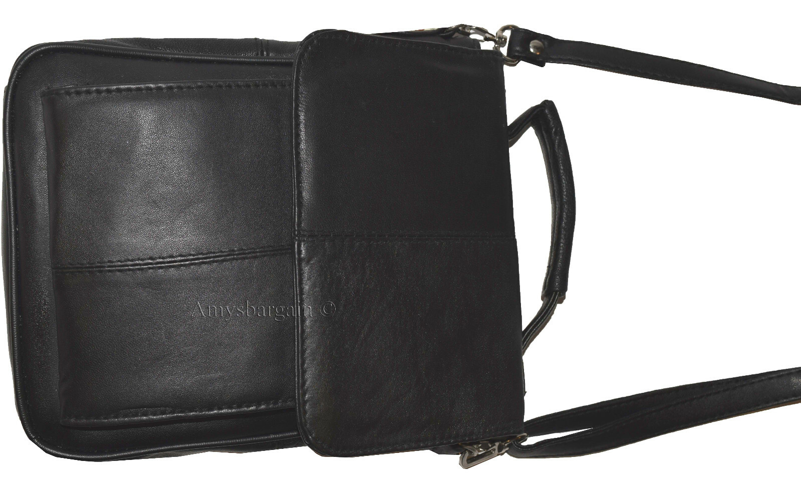 This is a 4 compartment men's leather bag with a handle and shoulder strap. It is made out of out of genuine soft leather.