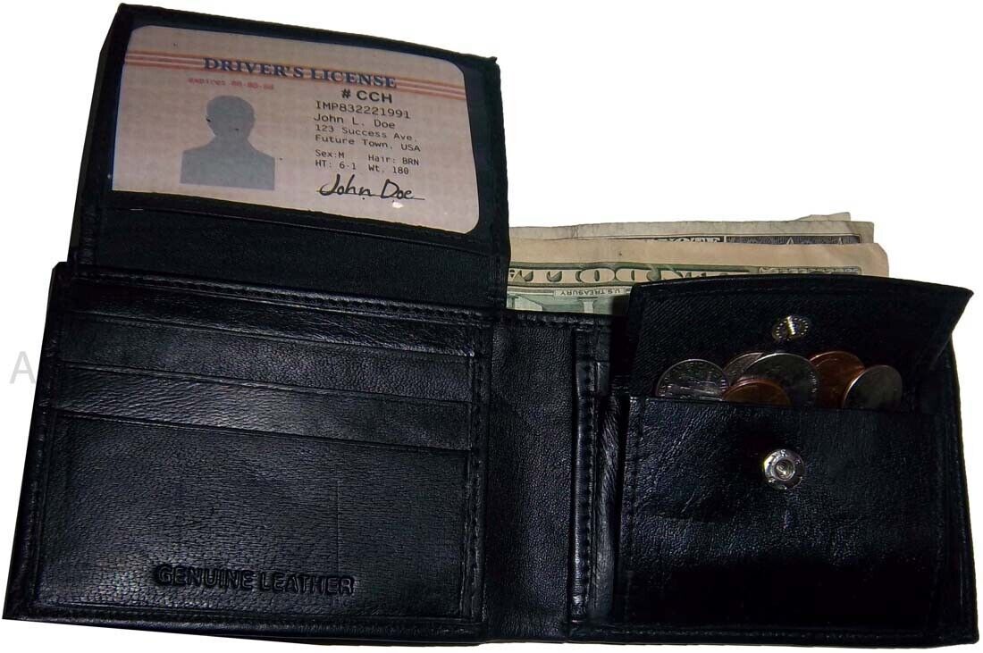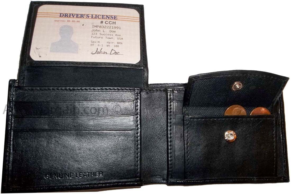 Description:This top wallet would make a great gift for that special someone that has it all, or just treat your selves to its qualities.This man's wallet offers: a built-in change purse for convenience.It has an easy in-and-out ID window, 6 card spaces and 2 billfold compartments.Item Details: