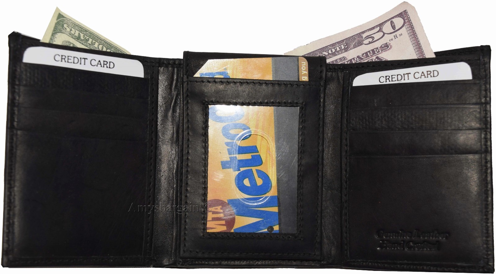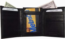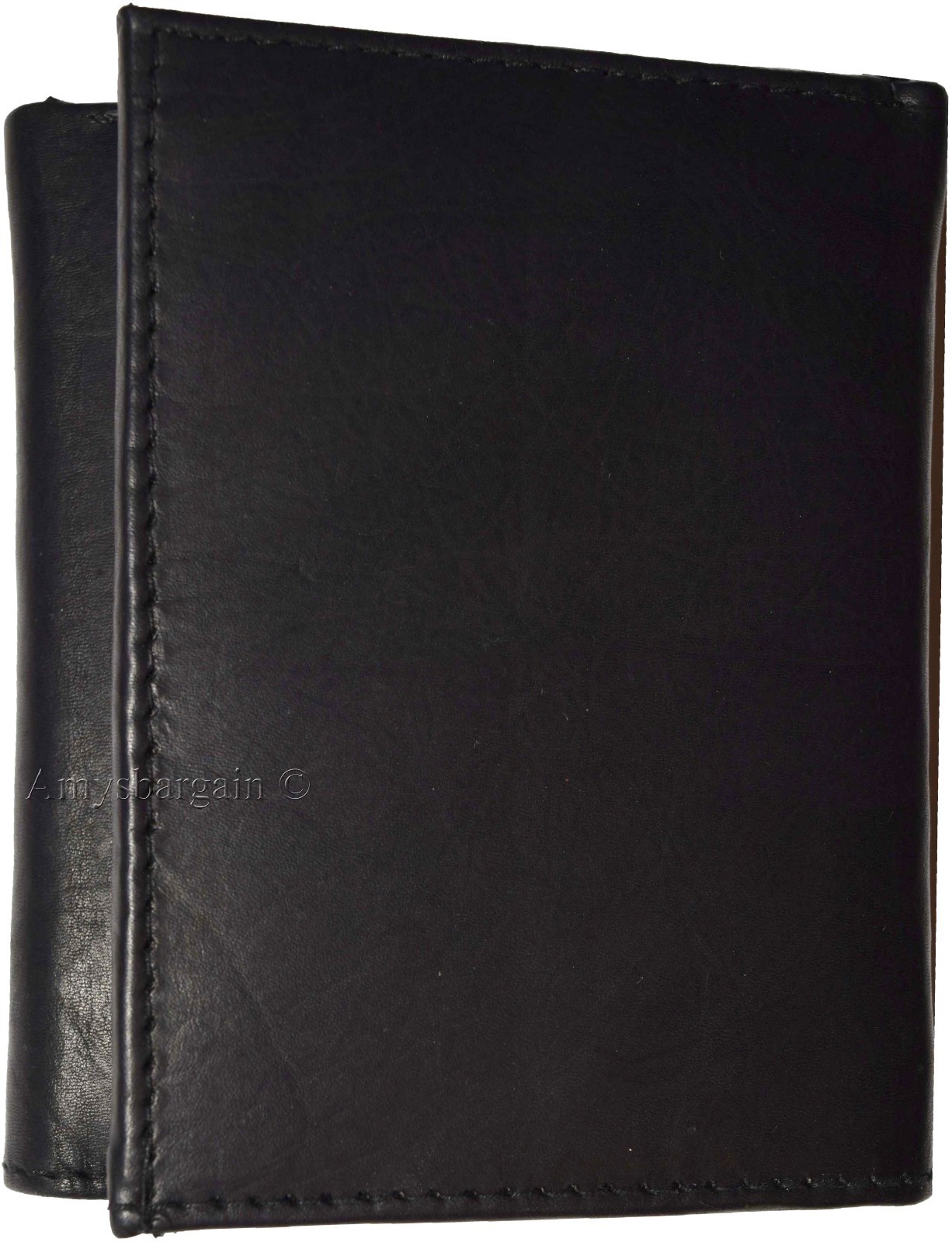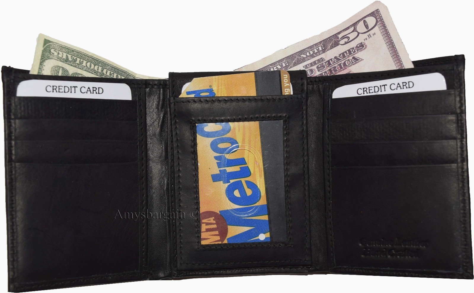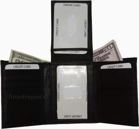 New Men's Trifold Leather Wallet 3 ID center piece Black 2 bill spaces wallet