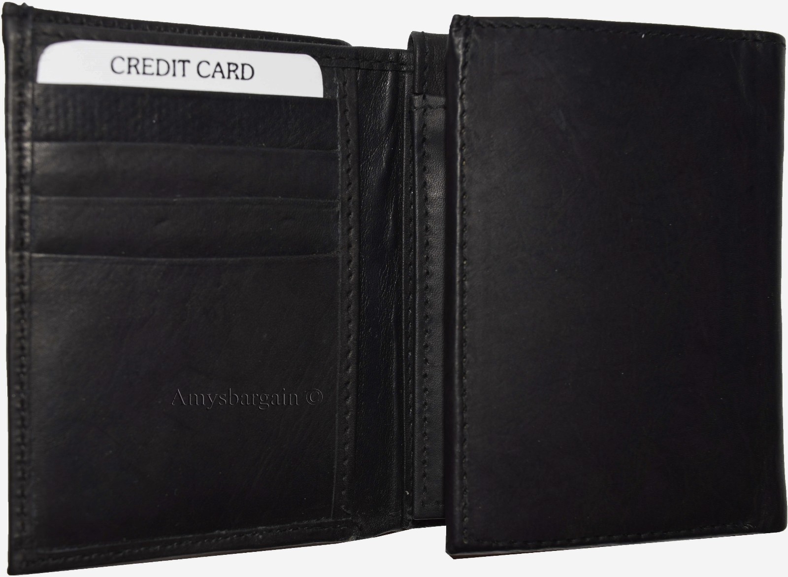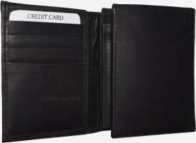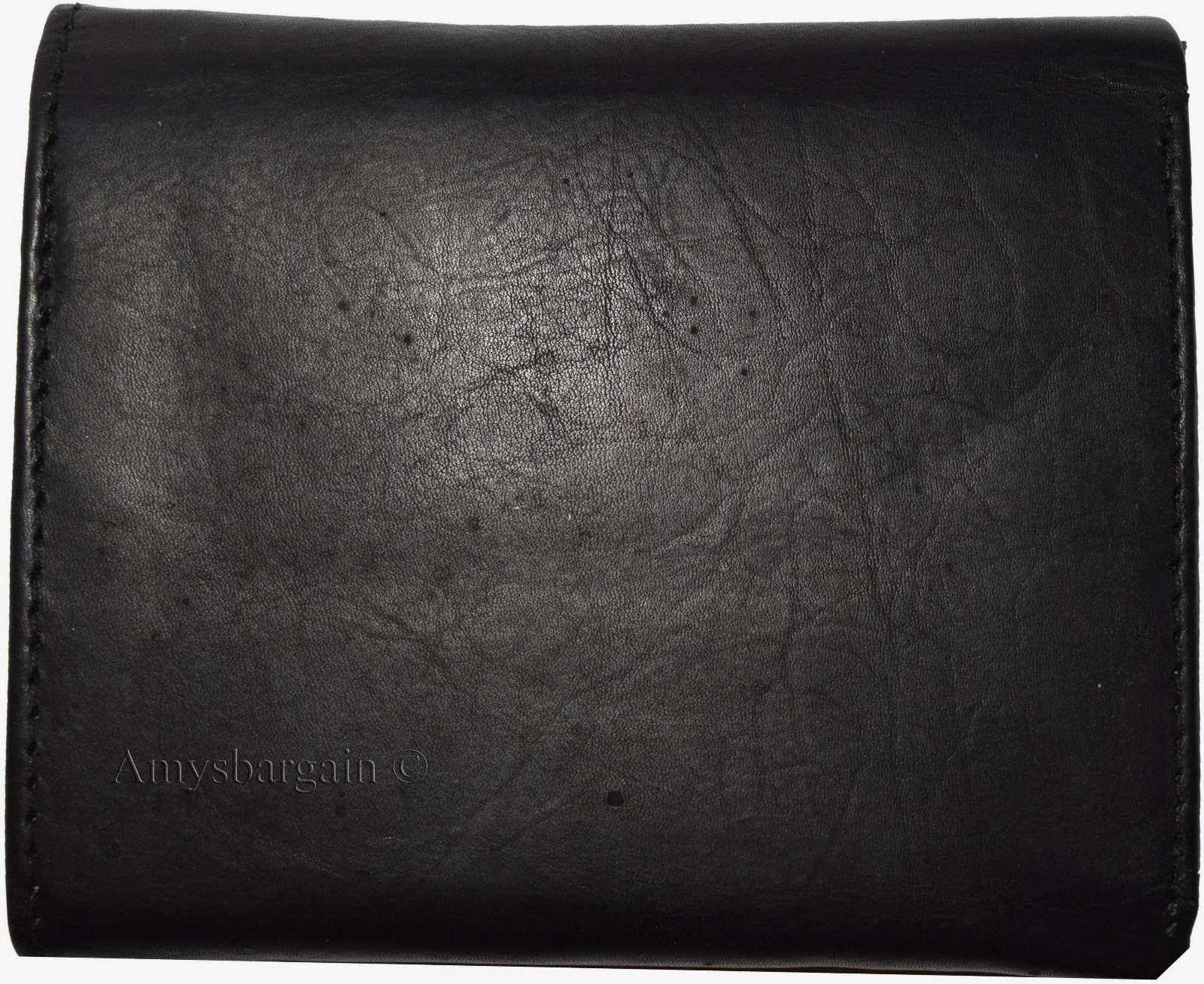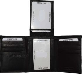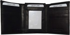 New Men's Trifold Leather Wallet 3 ID center piece Black 2 bill spaces wallet