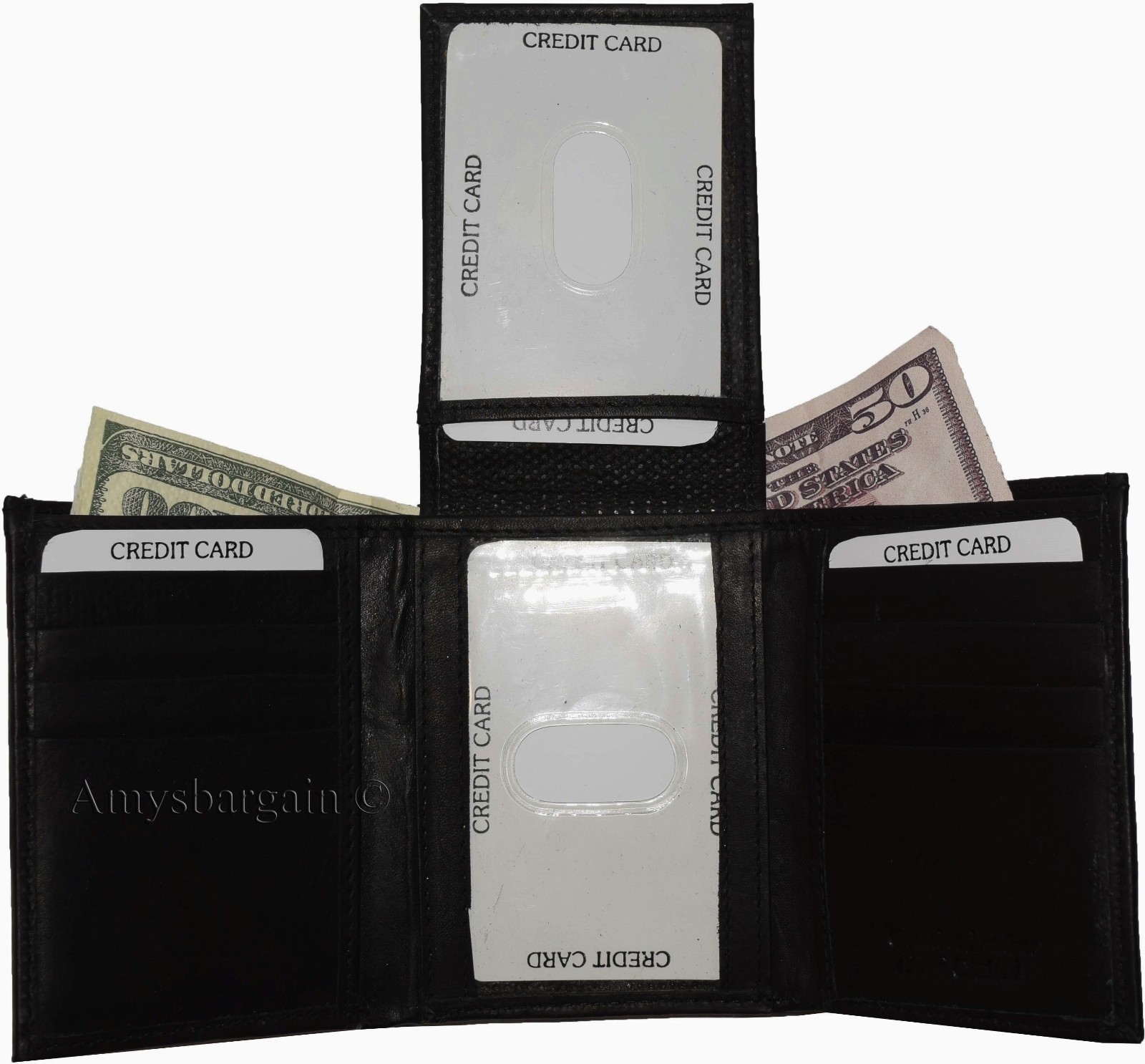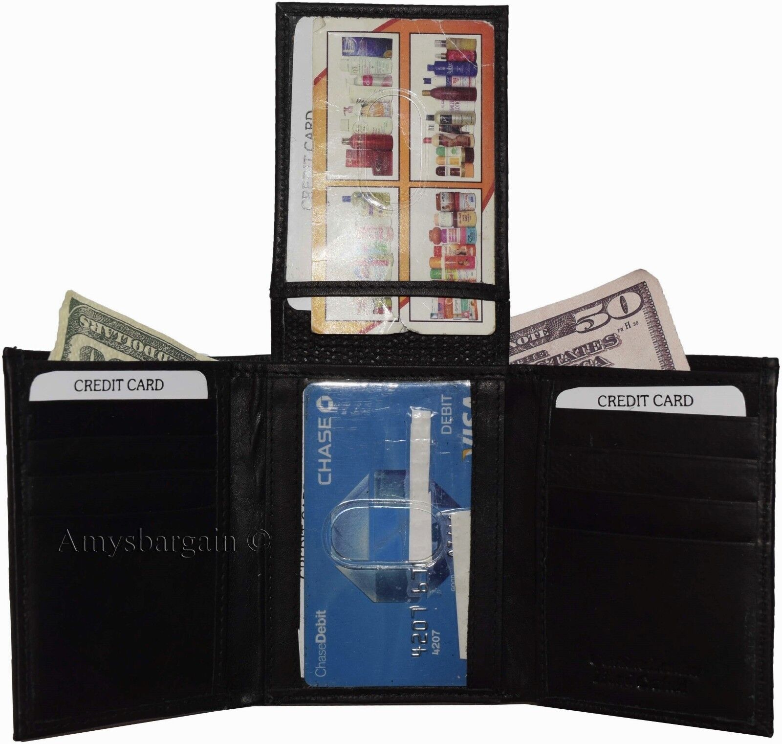 New Men's Trifold Leather Wallet 3 ID center piece Black 2 bill spaces wallet.Description:This is a men's leather trifold wallet with a built-in 2 ID center piece. And it has a generous 8 card slot. T... read more